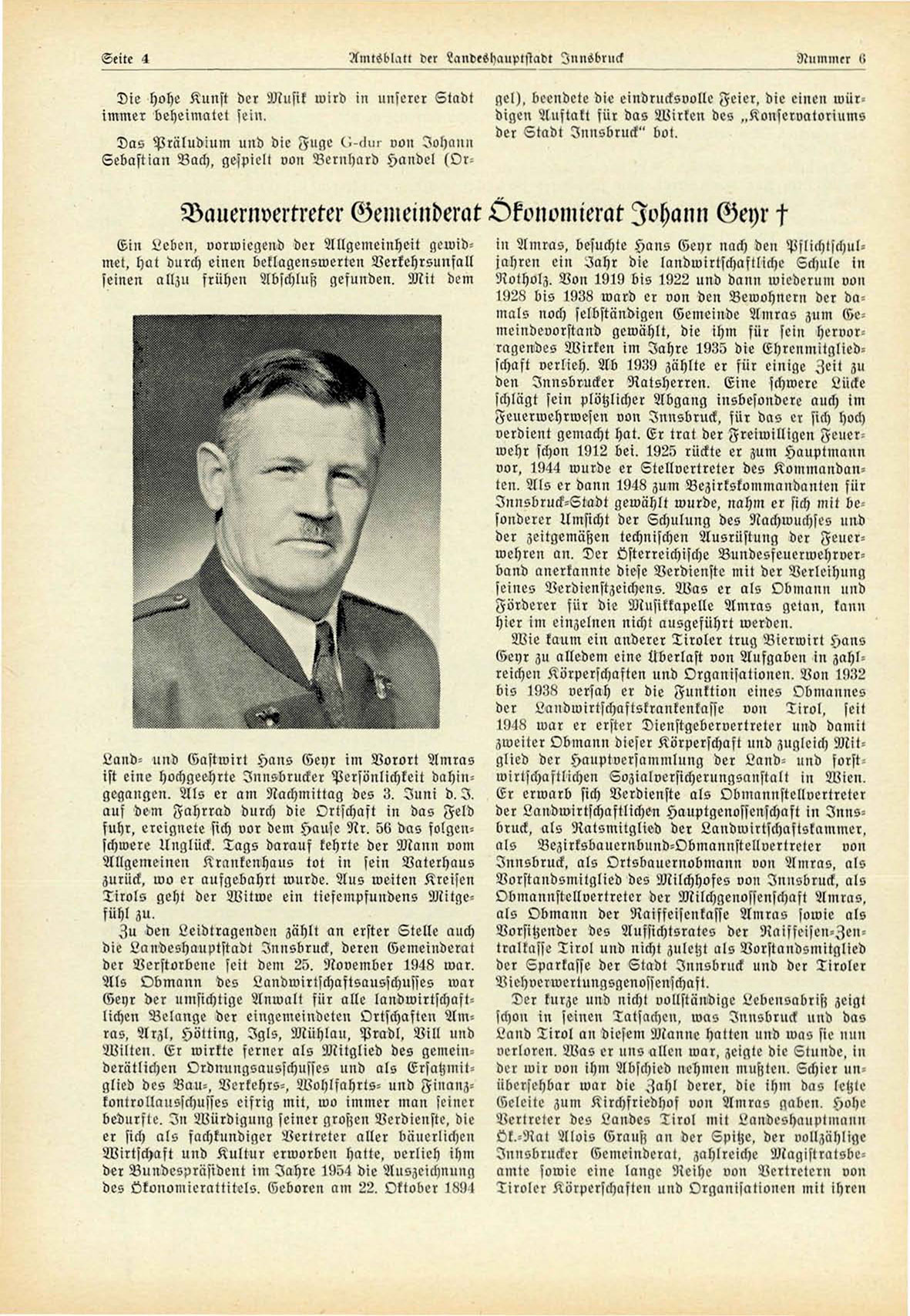 Innsbruck, als Ortsbauernobmann uon Amras, als
