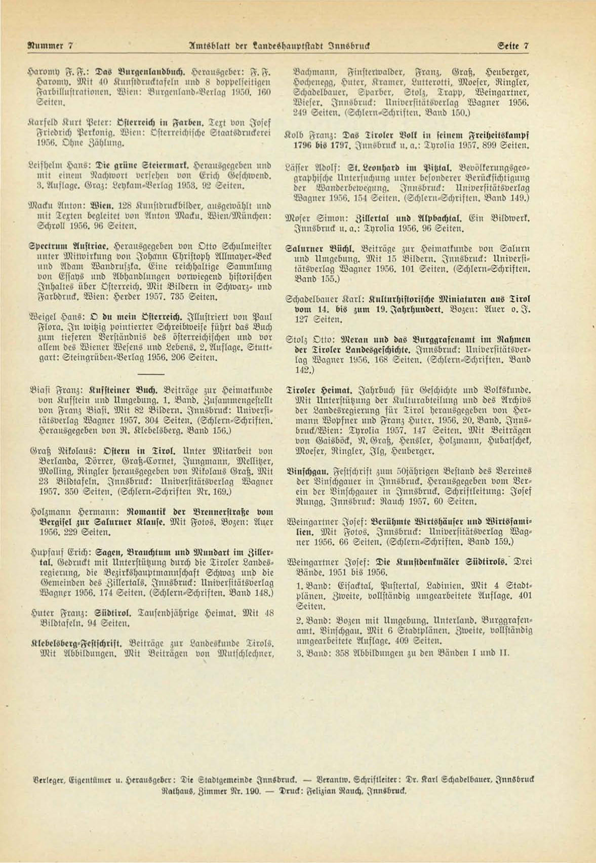 Verleger, Eigentümer ».Herausgeber: Tie Ltadtqemeinde Innsbruck. — Verantw. Schriftleiter: Dr. Karl Schaoelbauer, Innsbruck