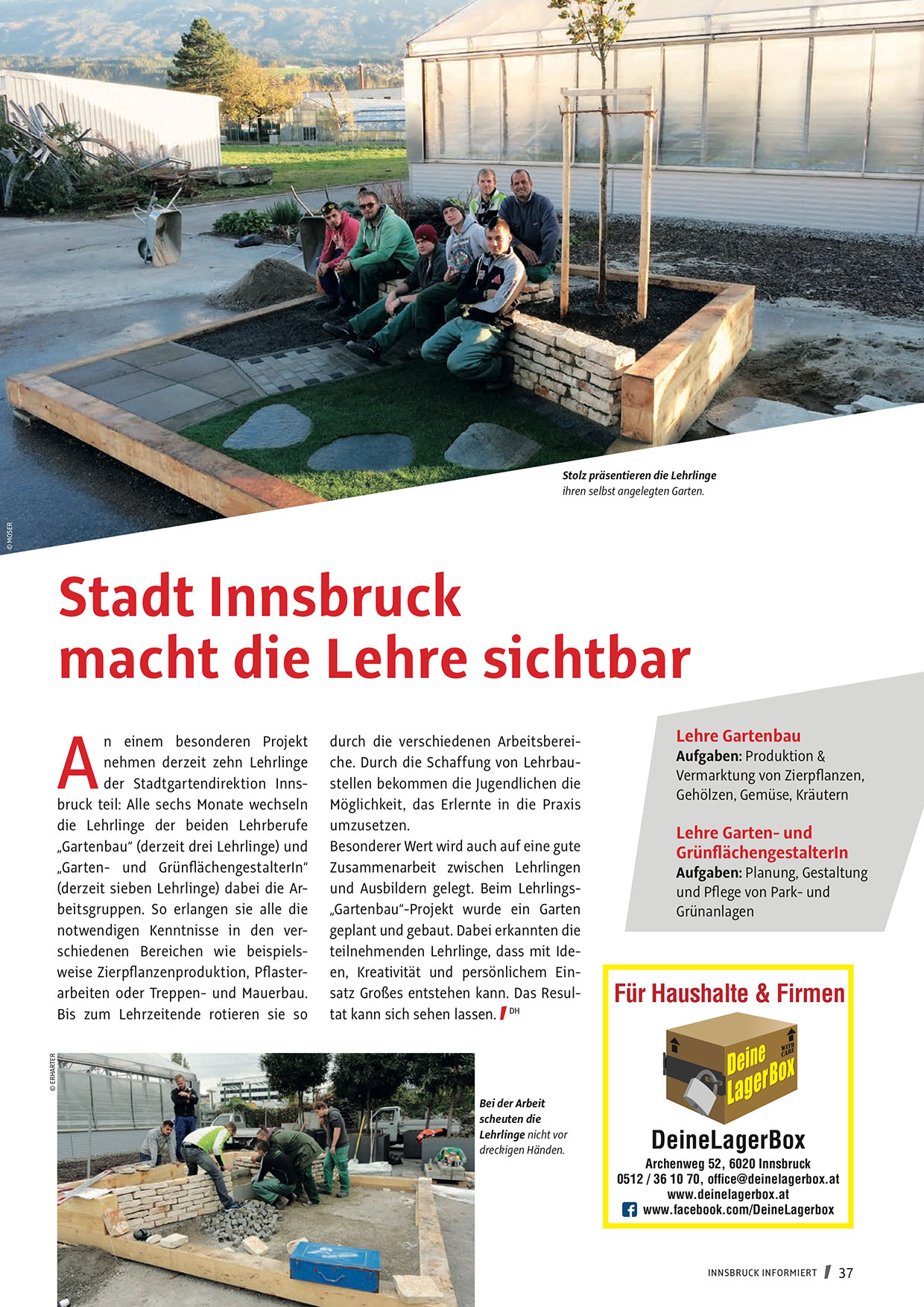 „Gartenbau“ (derzeit drei Lehrlinge) und