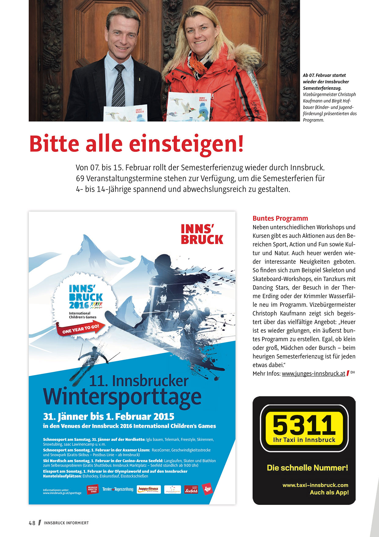 Dancing Stars, der Besuch in der Therme Erding oder der Krimmler Wasserfälle neu im Programm. Vizebürgermeister