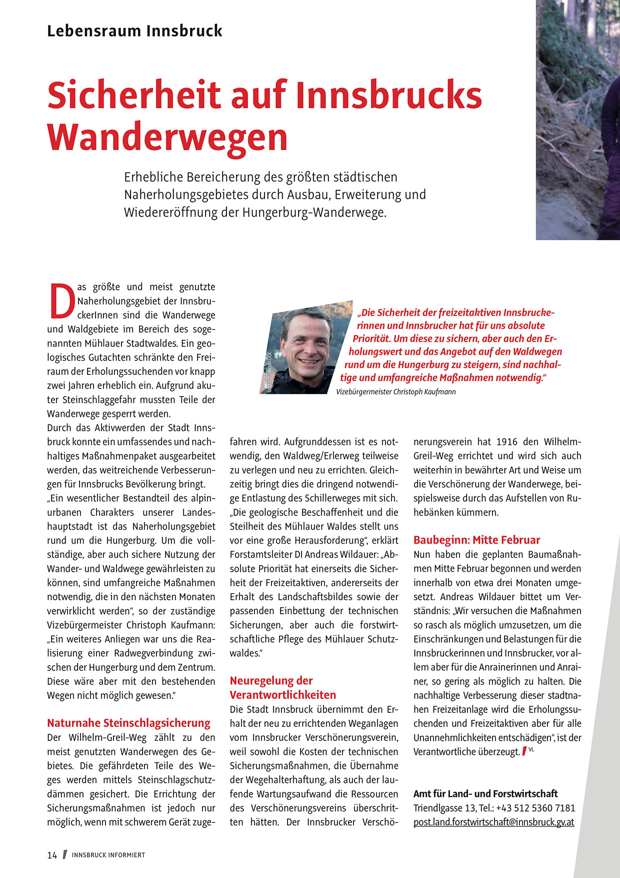 „Ein wesentlicher Bestandteil des alpinurbanen Charakters unserer Landeshauptstadt ist das Naherholungsgebiet