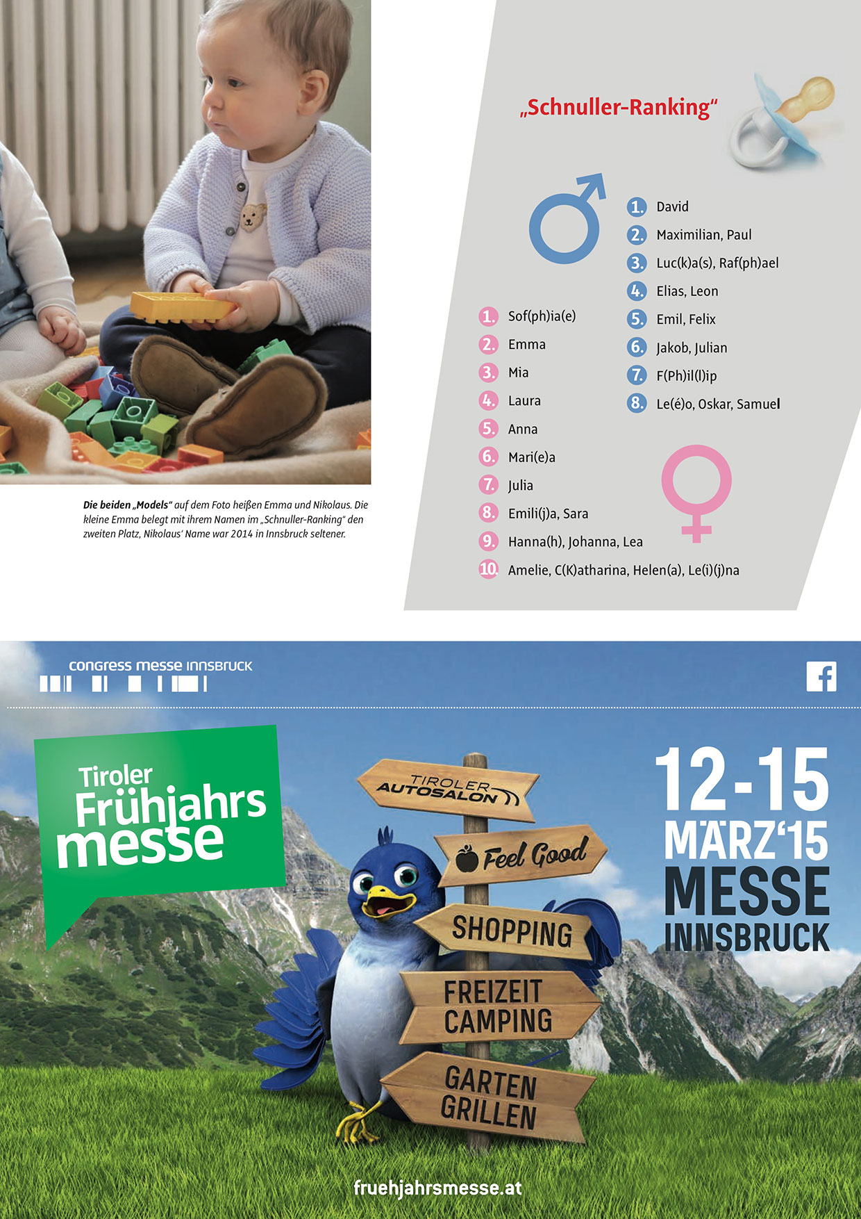 zweiten Platz, Nikolaus‘ Name war 2014 in Innsbruck seltener.
