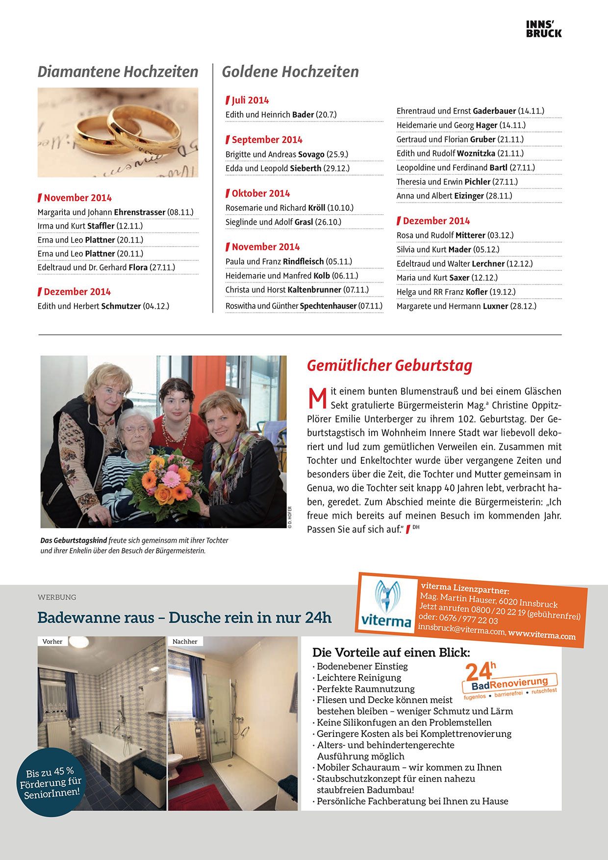 Sekt gratulierte Bürgermeisterin Mag.a Christine OppitzPlörer Emilie Unterberger zu ihrem 102. Geburtstag. Der Geburtstagstisch im Wohnheim Innere Stadt war liebevoll dekoriert und lud zum gemütlichen Verweilen ein. Zusammen mit