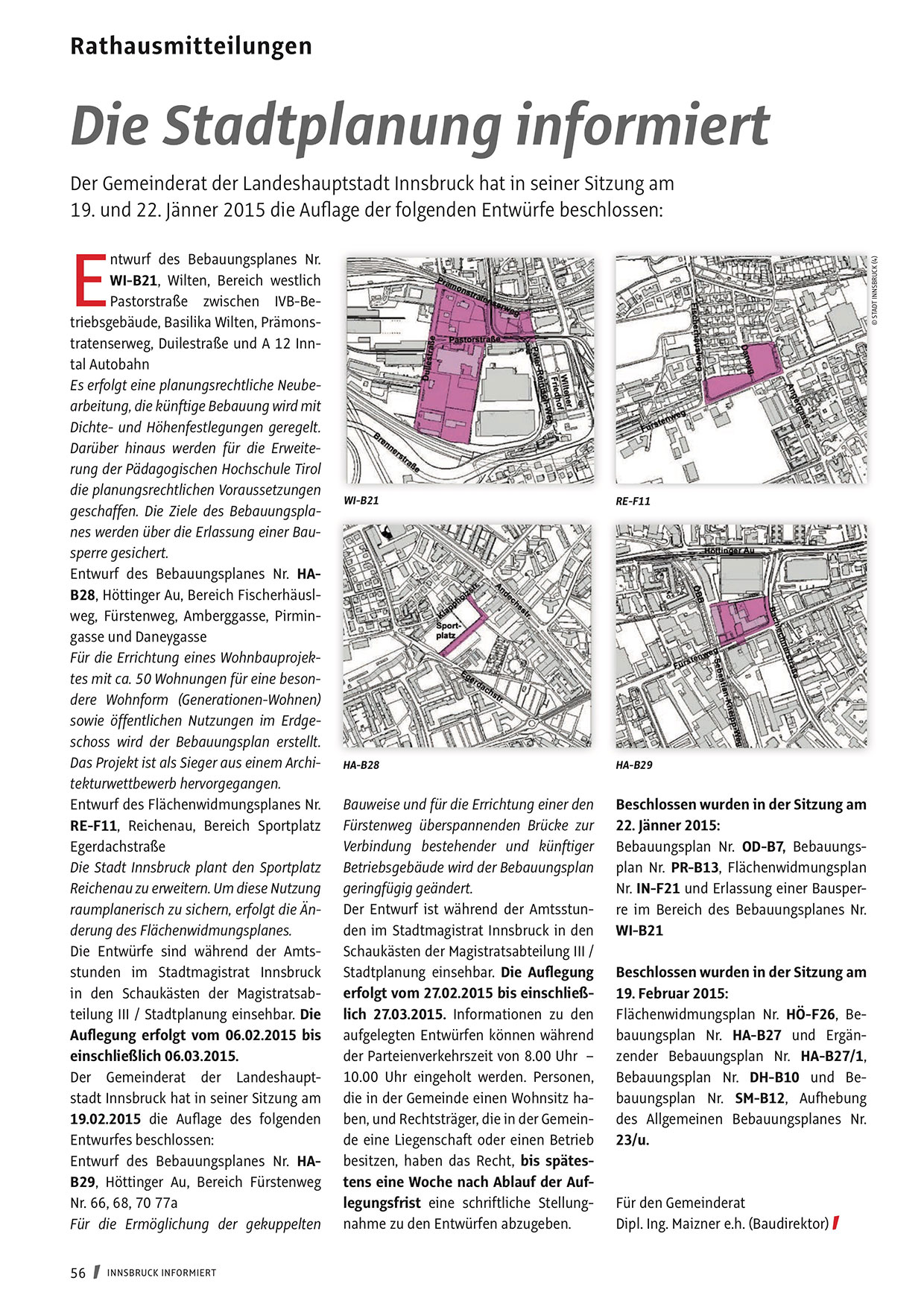Die Entwürfe sind während der Amtsstunden im Stadtmagistrat Innsbruck
