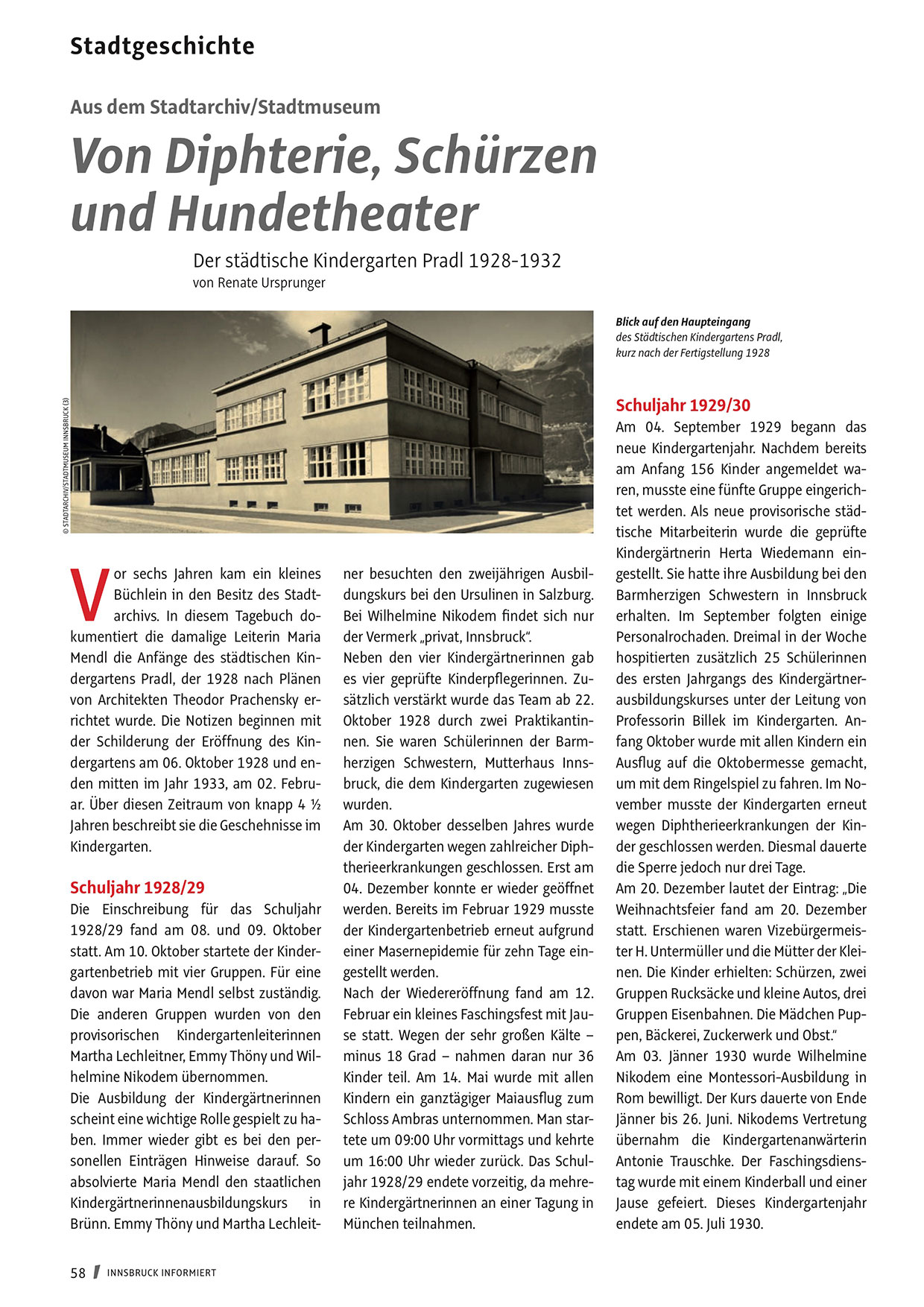 Mendl die Anfänge des städtischen Kindergartens Pradl, der 1928 nach Plänen