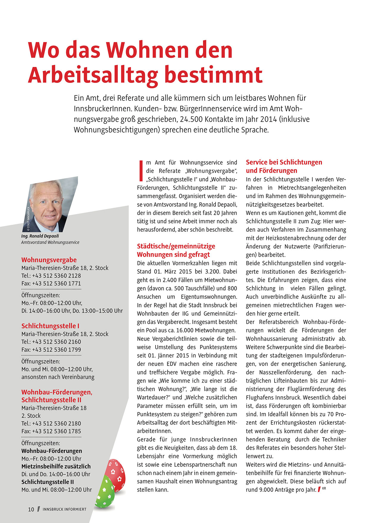 InnsbruckerInnen. Kunden- bzw. BürgerInnenservice wird im Amt Wohnungsvergabe groß geschrieben, 24.500 Kontakte im Jahr 2014 (inklusive