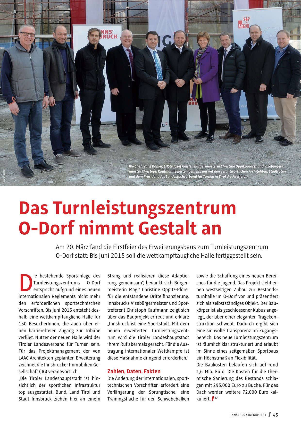 neuen erweiterten Turnleistungszentrum wird die Tiroler Landeshauptstadt