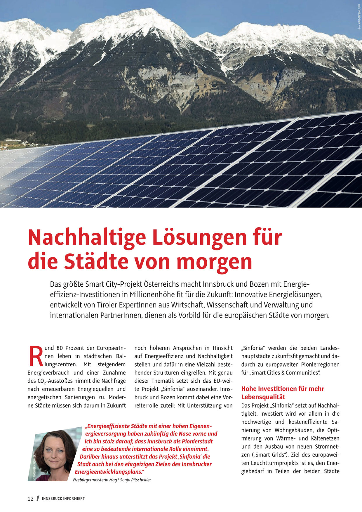 dieser Thematik setzt sich das EU-weite Projekt „Sinfonia“ auseinander. Innsbruck und Bozen kommt dabei eine Vorreiterrolle zuteil: Mit Unterstützung von