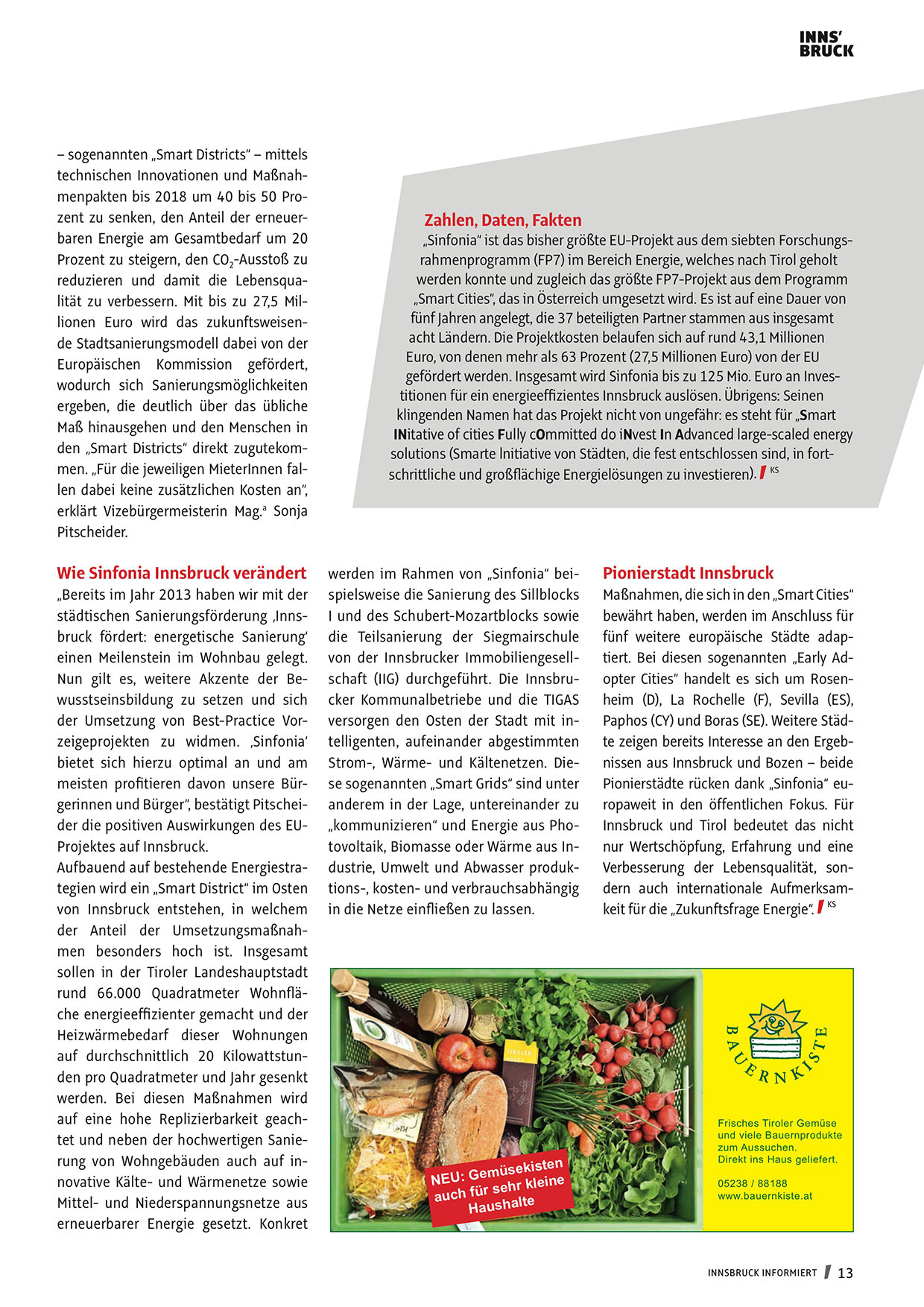 gefördert werden. Insgesamt wird Sinfonia bis zu 125 Mio. Euro an Investitionen für ein energieeffizientes Innsbruck auslösen. Übrigens: Seinen