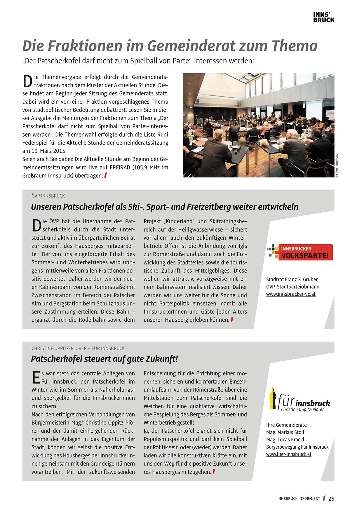 ie ÖVP hat die Übernahme des Patscherkofels durch die Stadt unterstützt und aktiv im überparteilichen Beirat