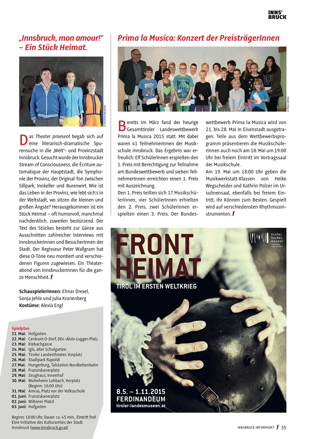 diese O-Töne neu montiert und verschiedenen Figuren zugewiesen. Ein Theaterabend von InnsbruckerInnen für die ganze Menschheit.