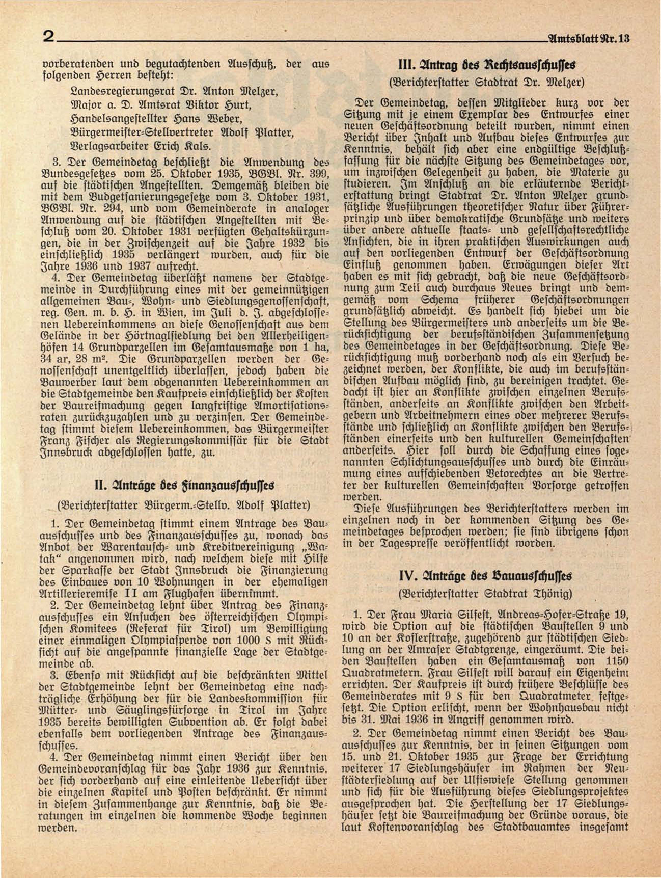 (Berichterstatter Bürgerm.-Stellv. Adolf Platter)