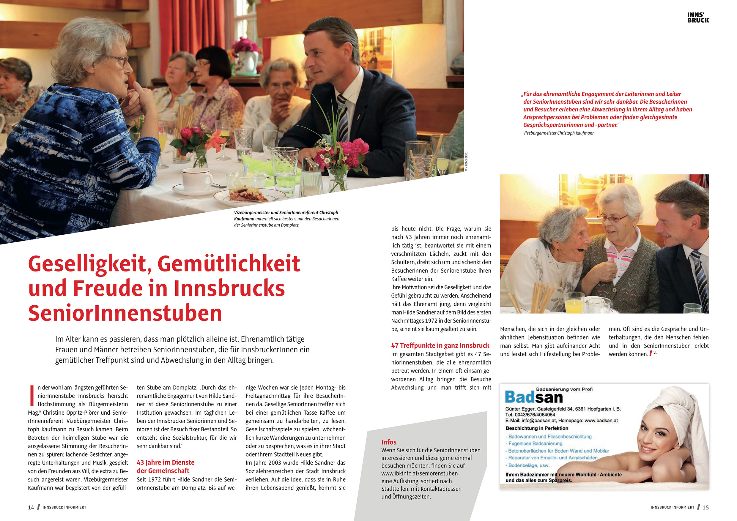 Institution gewachsen . Im täglichen Leben der Innsbrucker Seniorinnen und Senioren ist der Besuch fixer Bestandteil . So