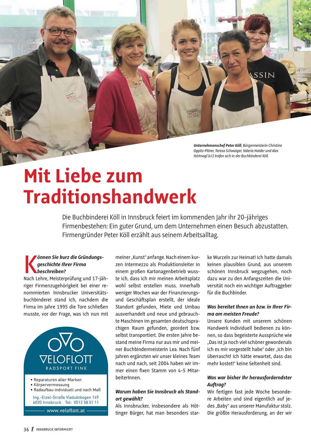 Die Buchbinderei Köll in Innsbruck feiert im kommenden Jahr ihr 20-jähriges
