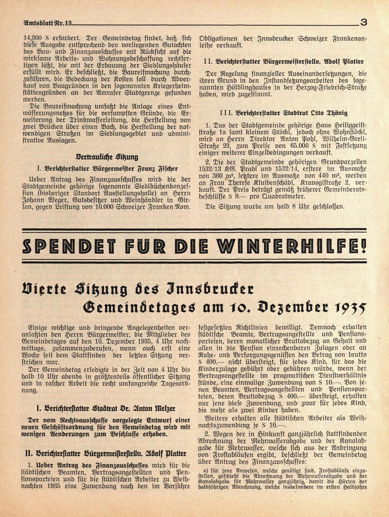 erfüllt wird. Er beschließt, die Vaureifmachung durchzuführen, die Bedeckung der Kosten soll durch Abverkauf von Baugründen in den sogenannten Kriegerheimstättengründen an der Amraser Stadtgrenze gefunden
