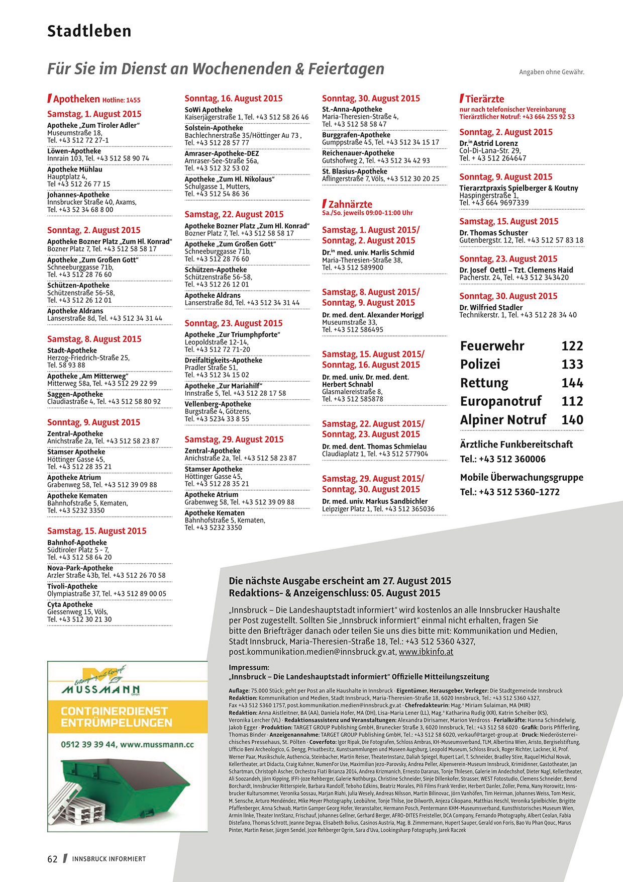 Auflage: 75.000 Stück; geht per Post an alle Haushalte in Innsbruck · Eigentümer, Herausgeber, Verleger: Die Stadtgemeinde Innsbruck