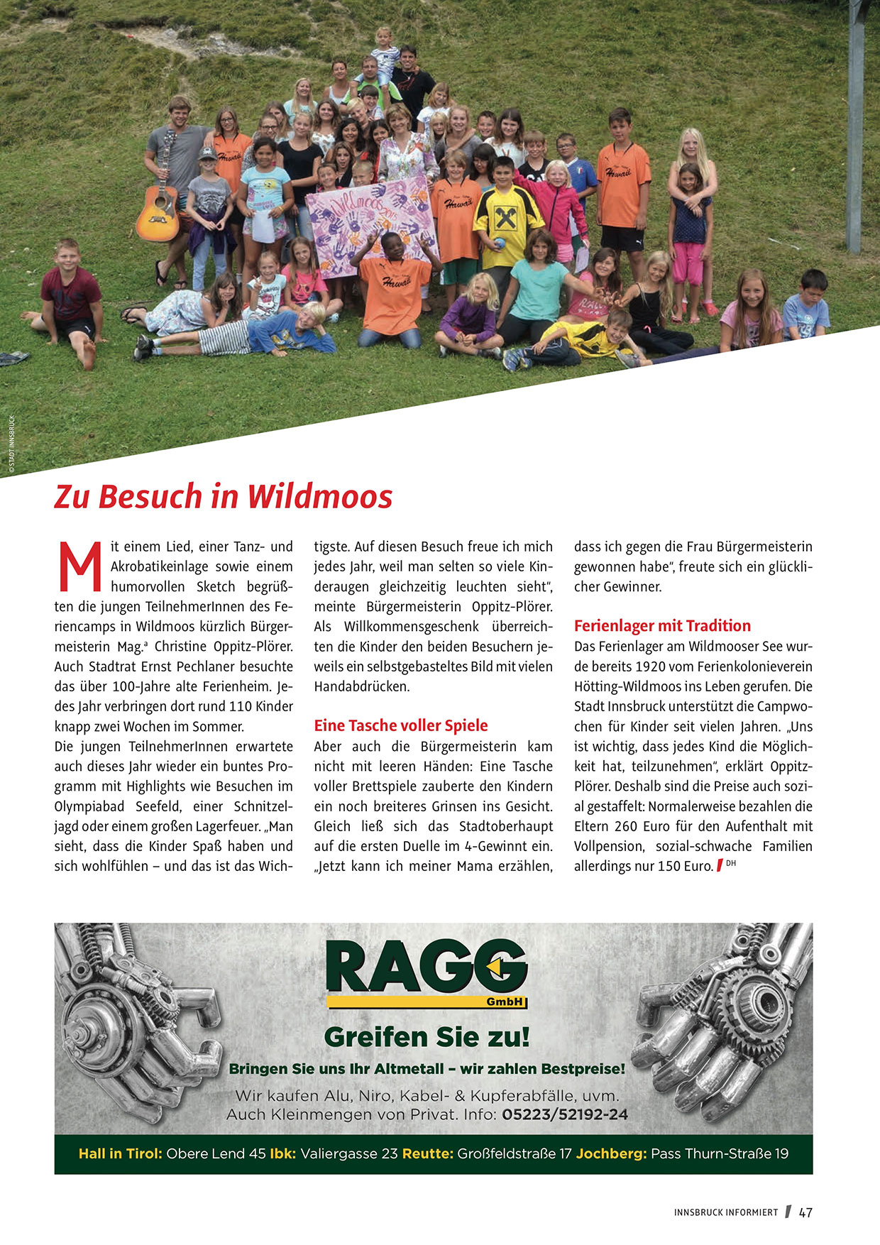 Stadt Innsbruck unterstützt die Campwochen für Kinder seit vielen Jahren. „Uns