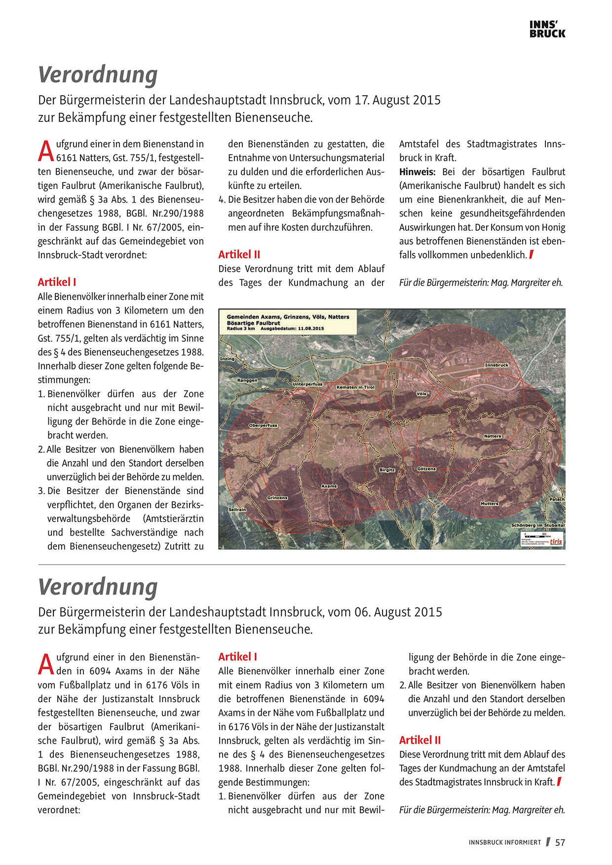 Der Bürgermeisterin der Landeshauptstadt Innsbruck, vom 06. August 2015