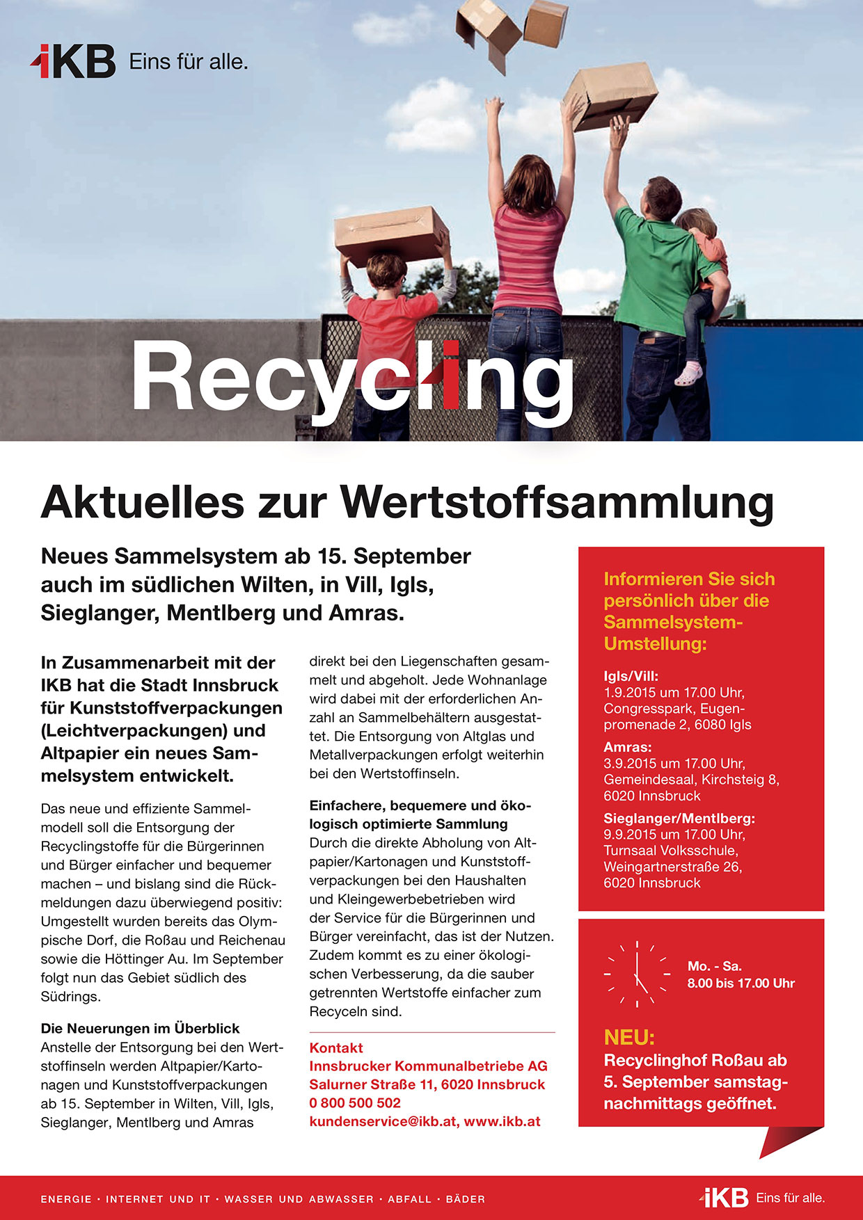 Anstelle der Entsorgung bei den Wertstoffinseln werden Altpapier/Kartonagen und Kunststoffverpackungen