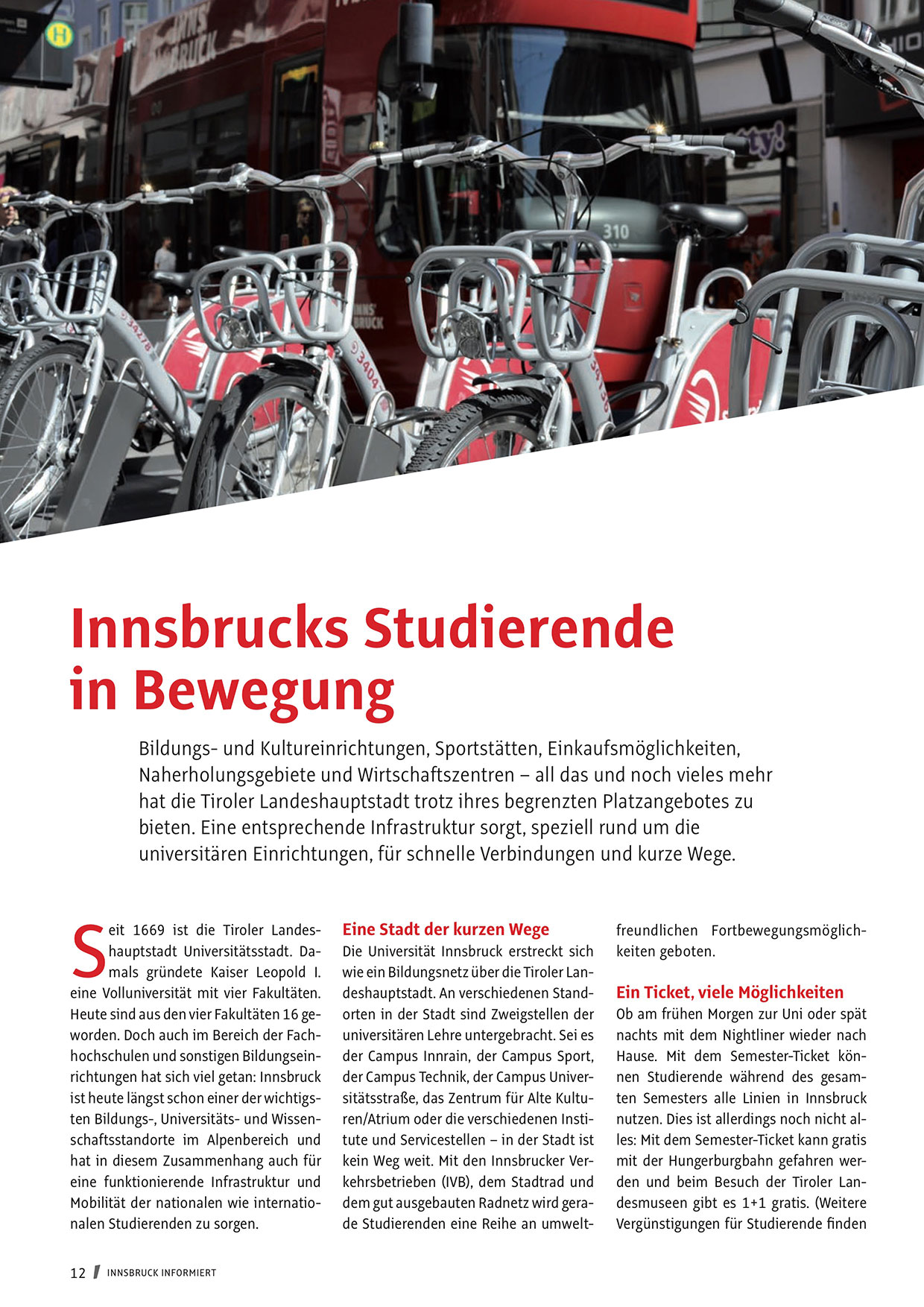 kein Weg weit. Mit den Innsbrucker Verkehrsbetrieben (IVB), dem Stadtrad und