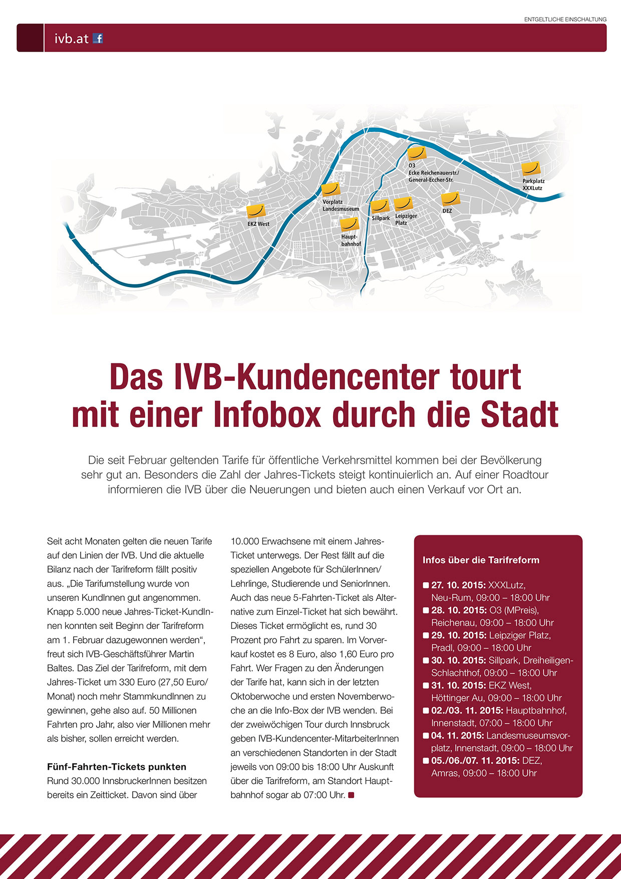 Oktoberwoche und ersten Novemberwoche an die Info-Box der IVB wenden. Bei