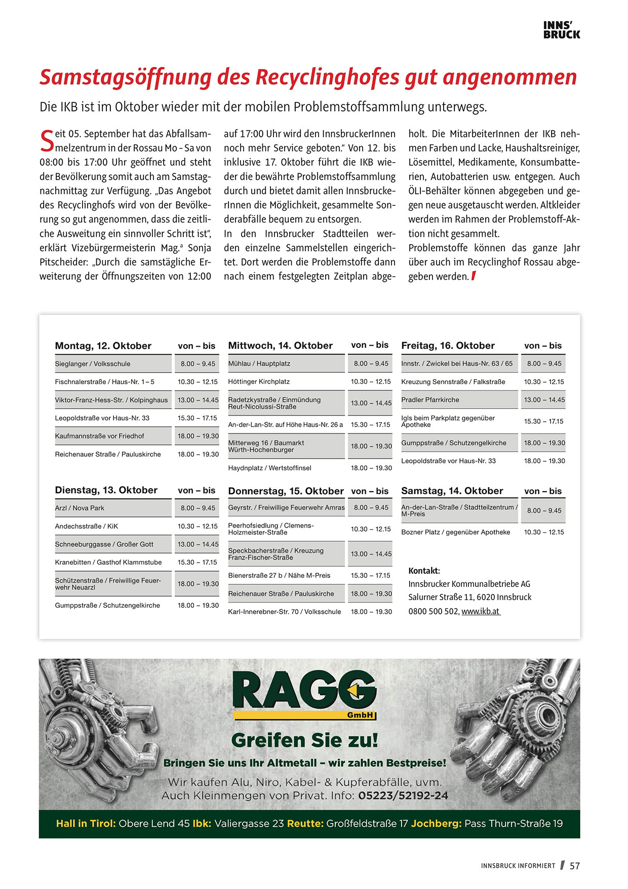 durch und bietet damit allen InnsbruckerInnen die Möglichkeit, gesammelte Sonderabfälle bequem zu entsorgen.
