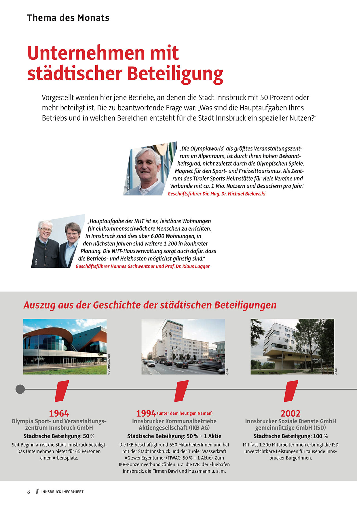 Vorgestellt werden hier jene Betriebe, an denen die Stadt Innsbruck mit 50 Prozent oder