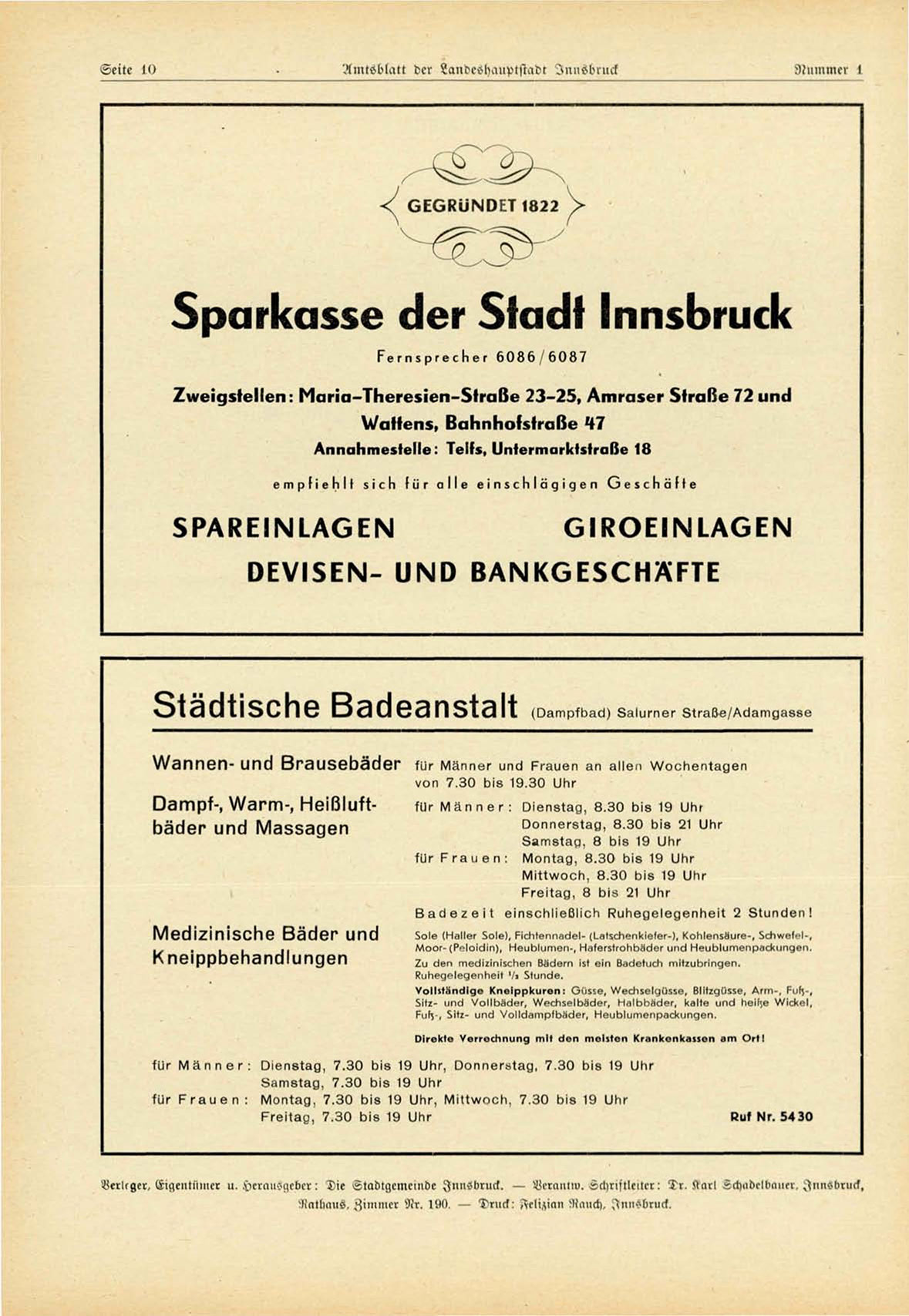 Verleger, Eiqentiimcr u. neraii^qebcr 1 Die Stadtgemeinde Innsbrucl. — Vrralilw. Schriftleiter: Tr,