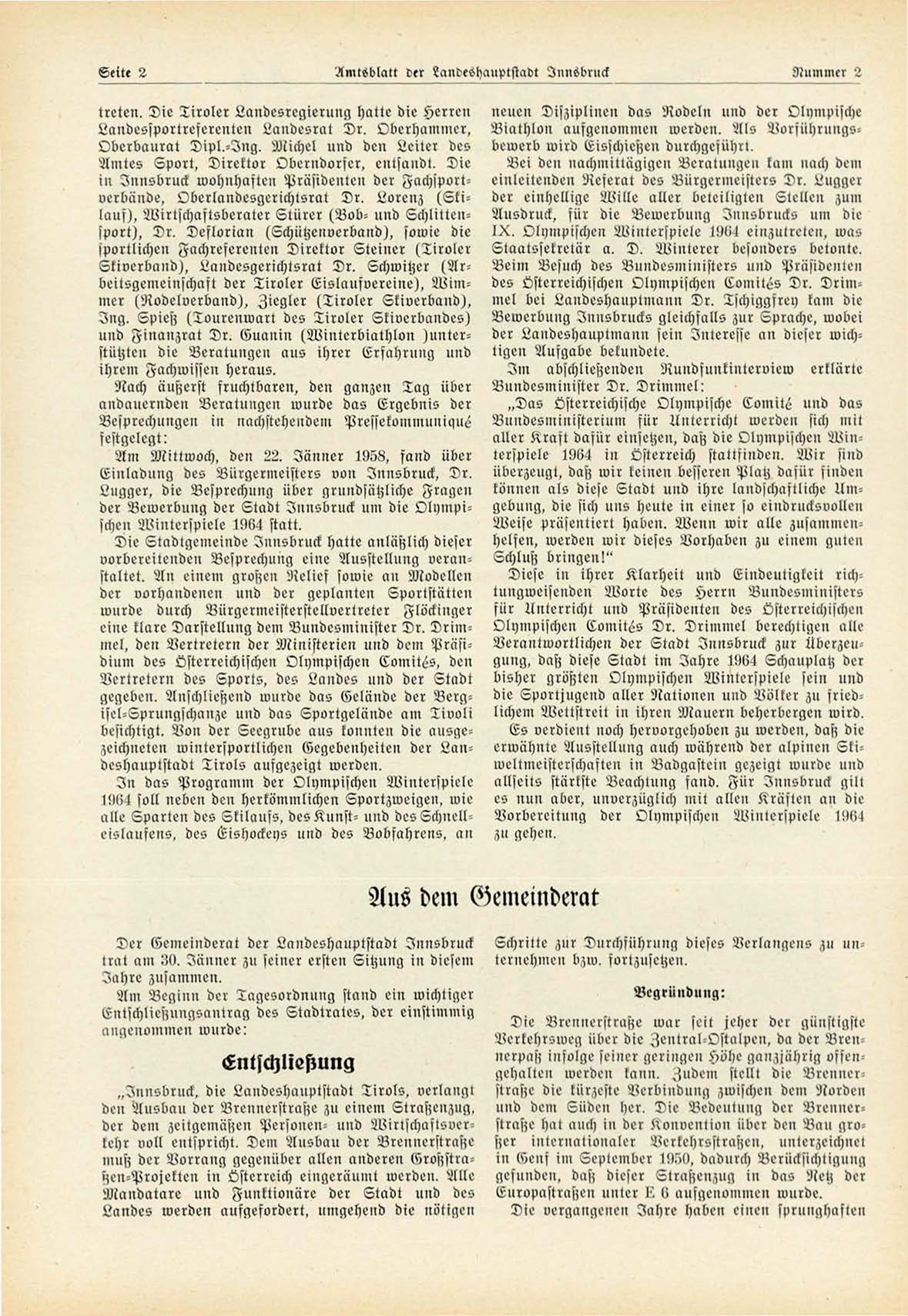 der Bewerbung der Stadt Innsbruck um die Olympischen Winterspiele 1964 statt.