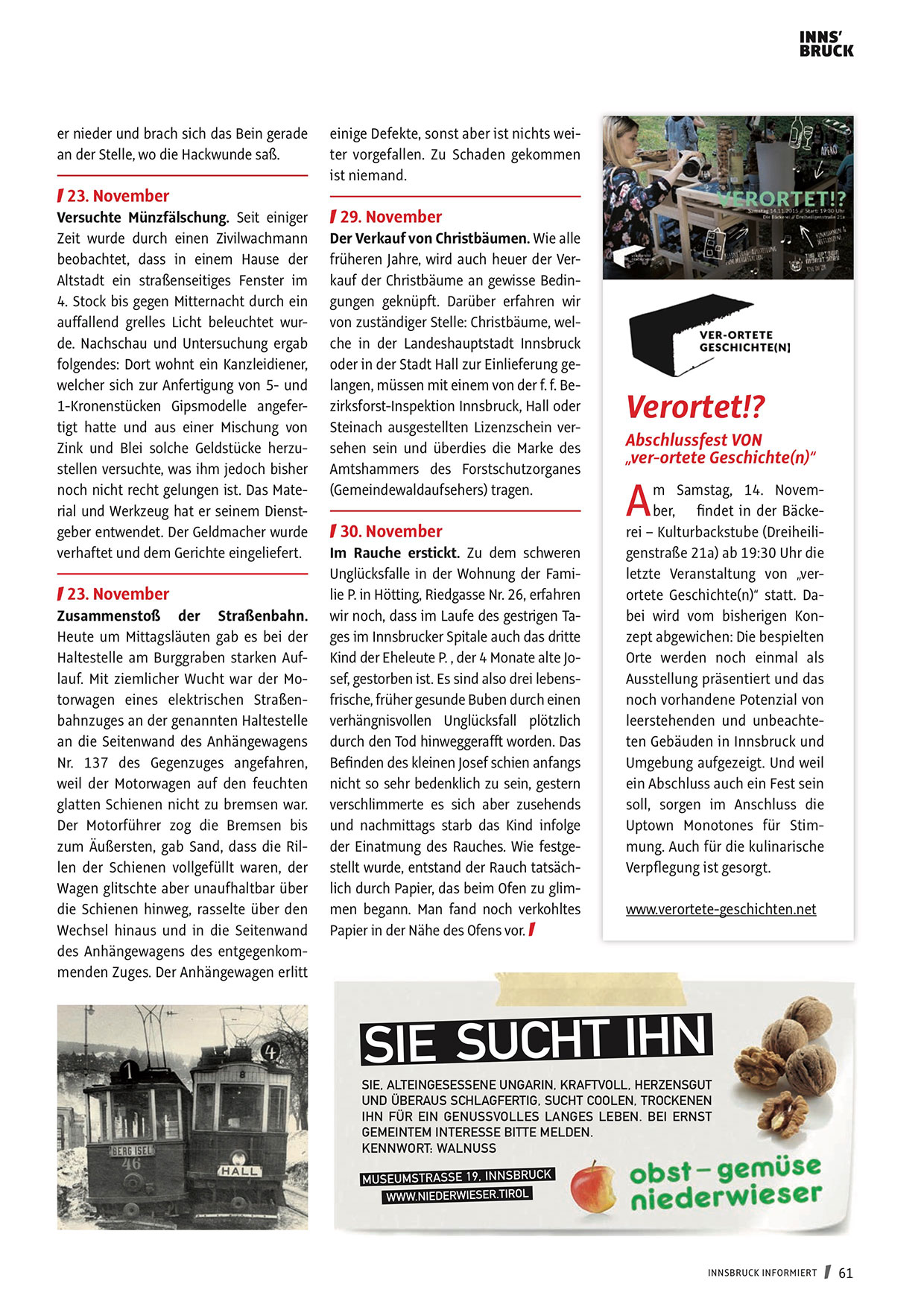 Unglücksfalle in der Wohnung der Familie P. in Hötting, Riedgasse Nr. 26, erfahren