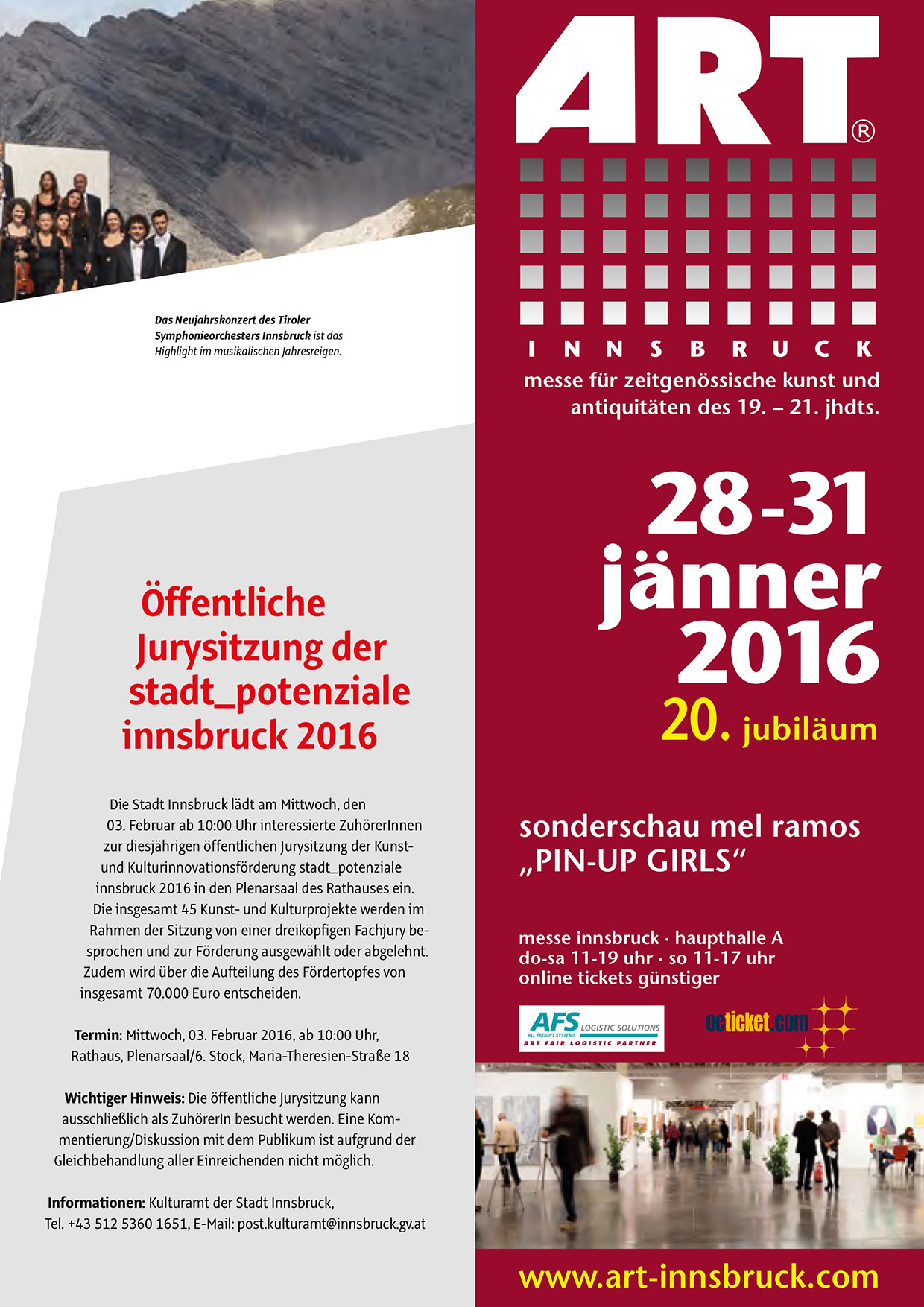 Tel. +43 512 5360 1651, E-Mail: post.kulturamt@innsbruck.gv.at