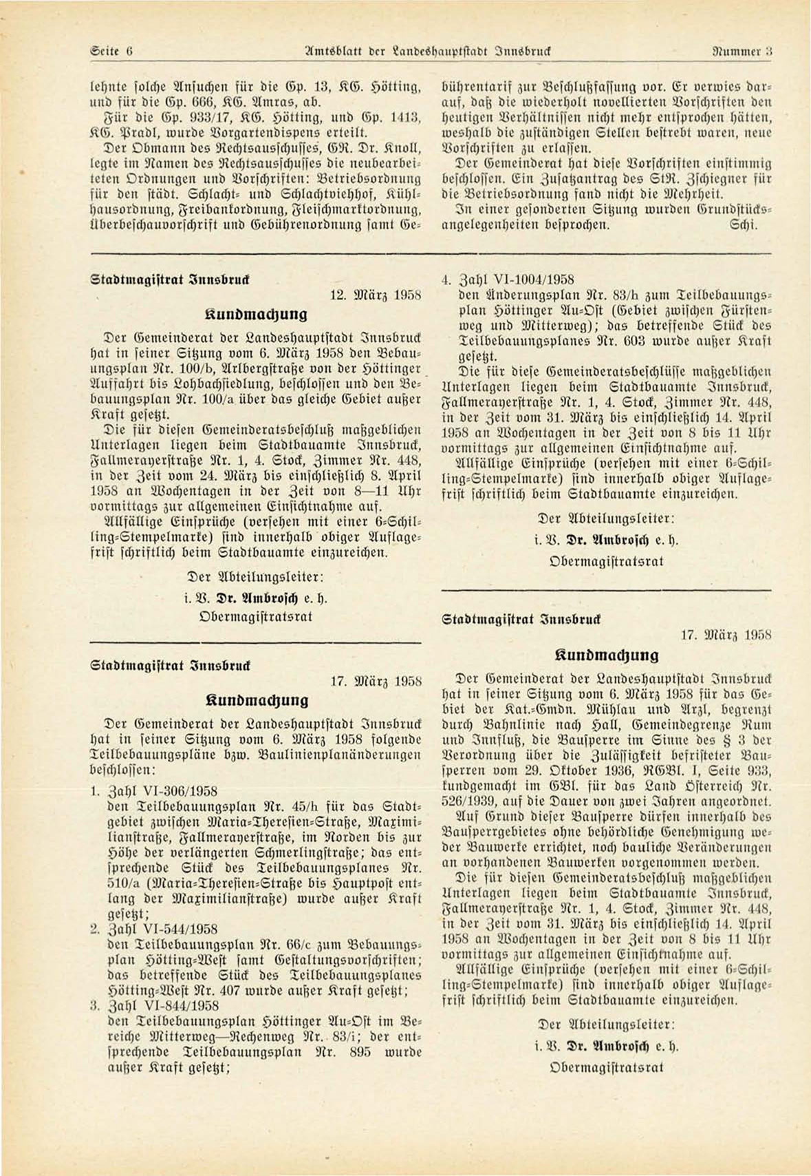 Unterlagen liegen beim Stadtbauamte Innsbruck,