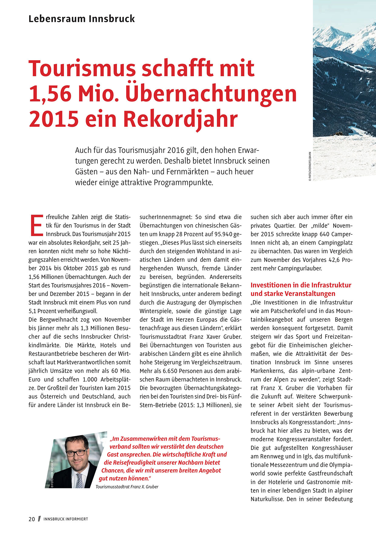 Auch für das Tourismusjahr 2016 gilt, den hohen Erwartungen gerecht zu werden. Deshalb bietet Innsbruck seinen
