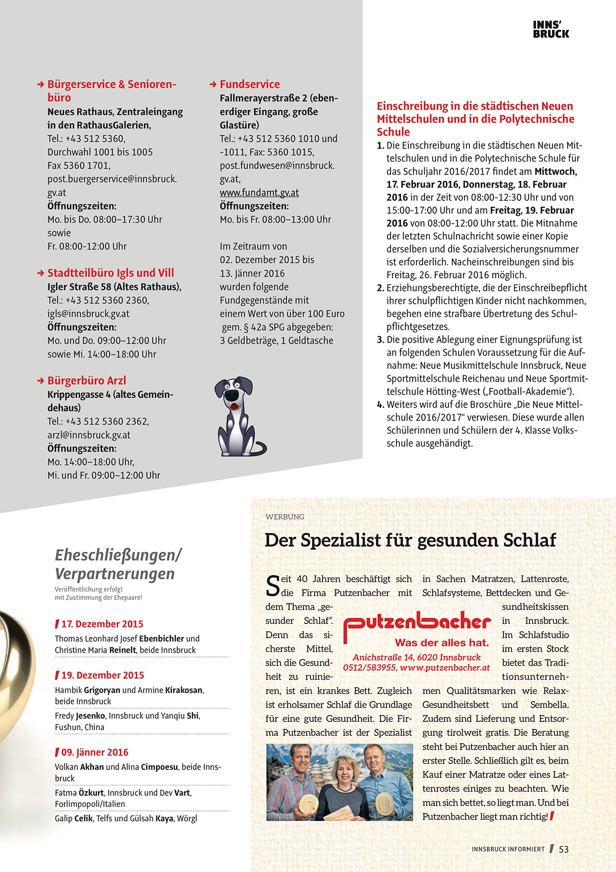 sich die Gesundbietet das Tradi0512/583955, www.putzenbacher.at