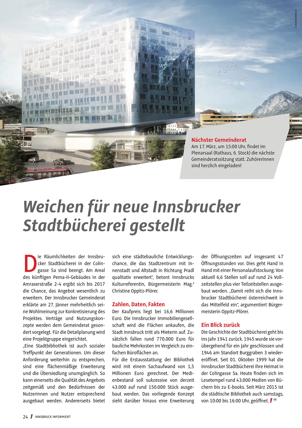 aktuell 6,6 Stellen soll auf rund 24 Vollzeitstellen plus vier Teilzeitstellen ausgebaut werden. „Damit reiht sich die Innsbrucker Stadtbücherei österreichweit in