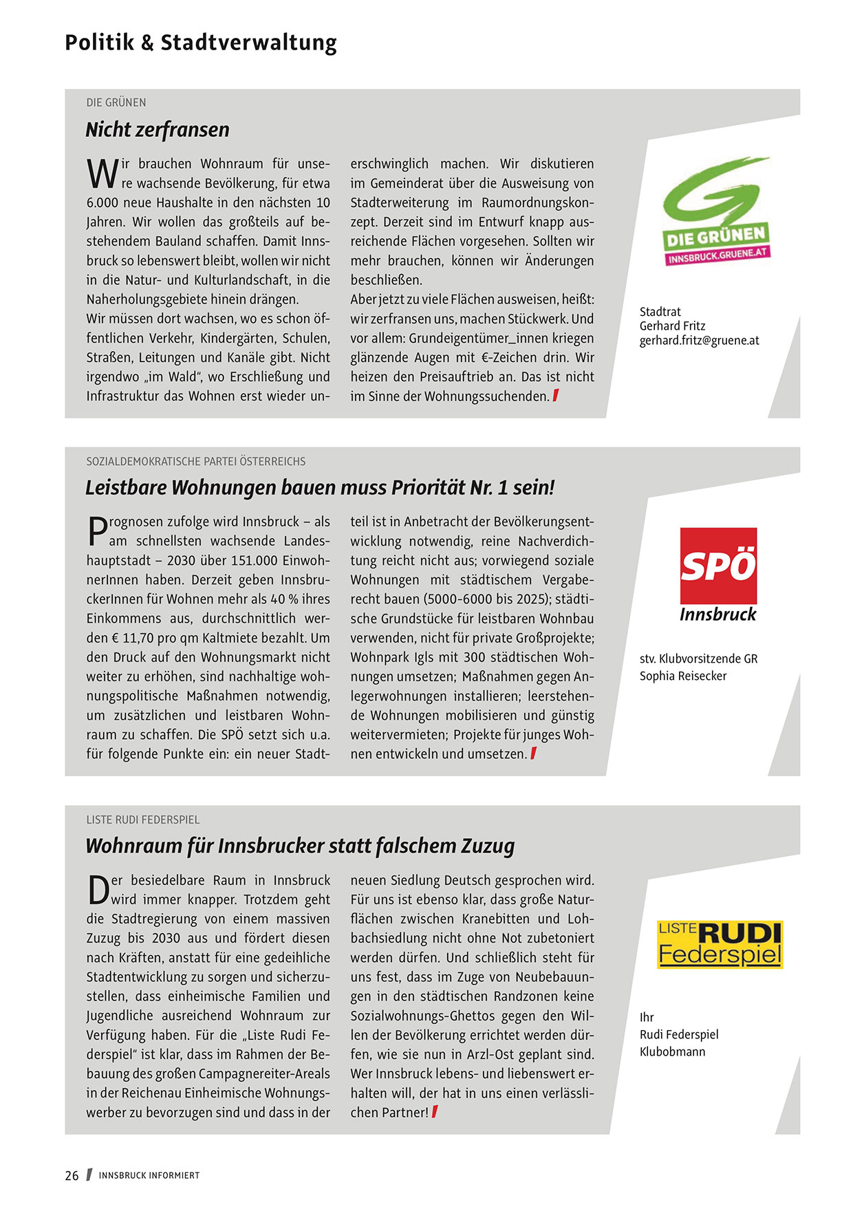 Wer Innsbruck lebens- und liebenswert erhalten will, der hat in uns einen verlässlichen Partner!