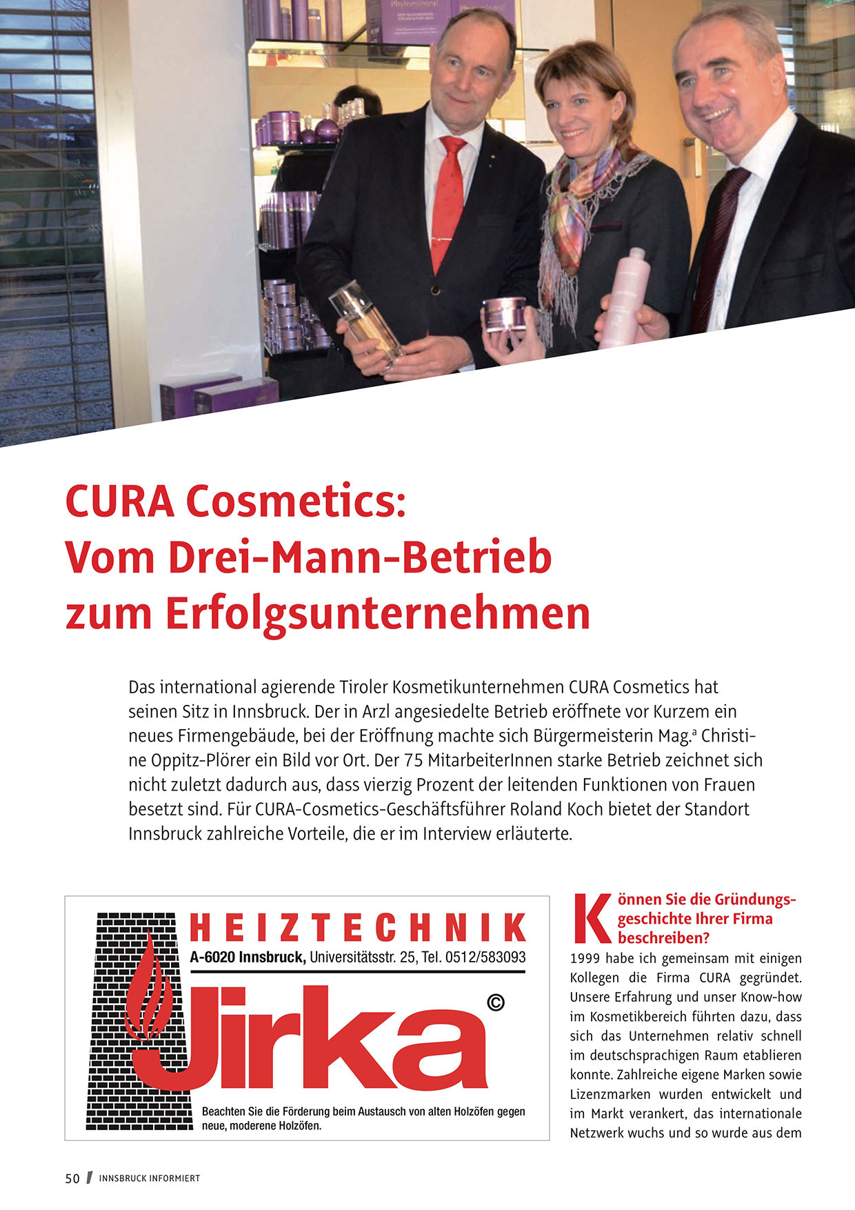 Das international agierende Tiroler Kosmetikunternehmen CURA Cosmetics hat