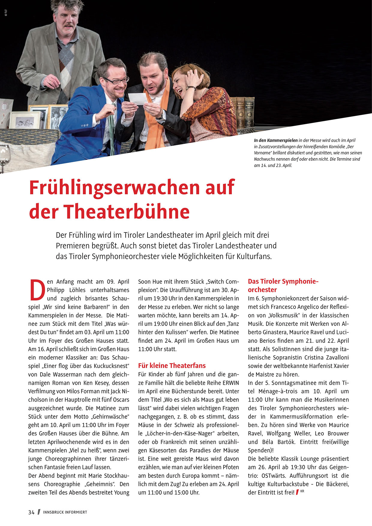 Der Frühling wird im Tiroler Landestheater im April gleich mit drei