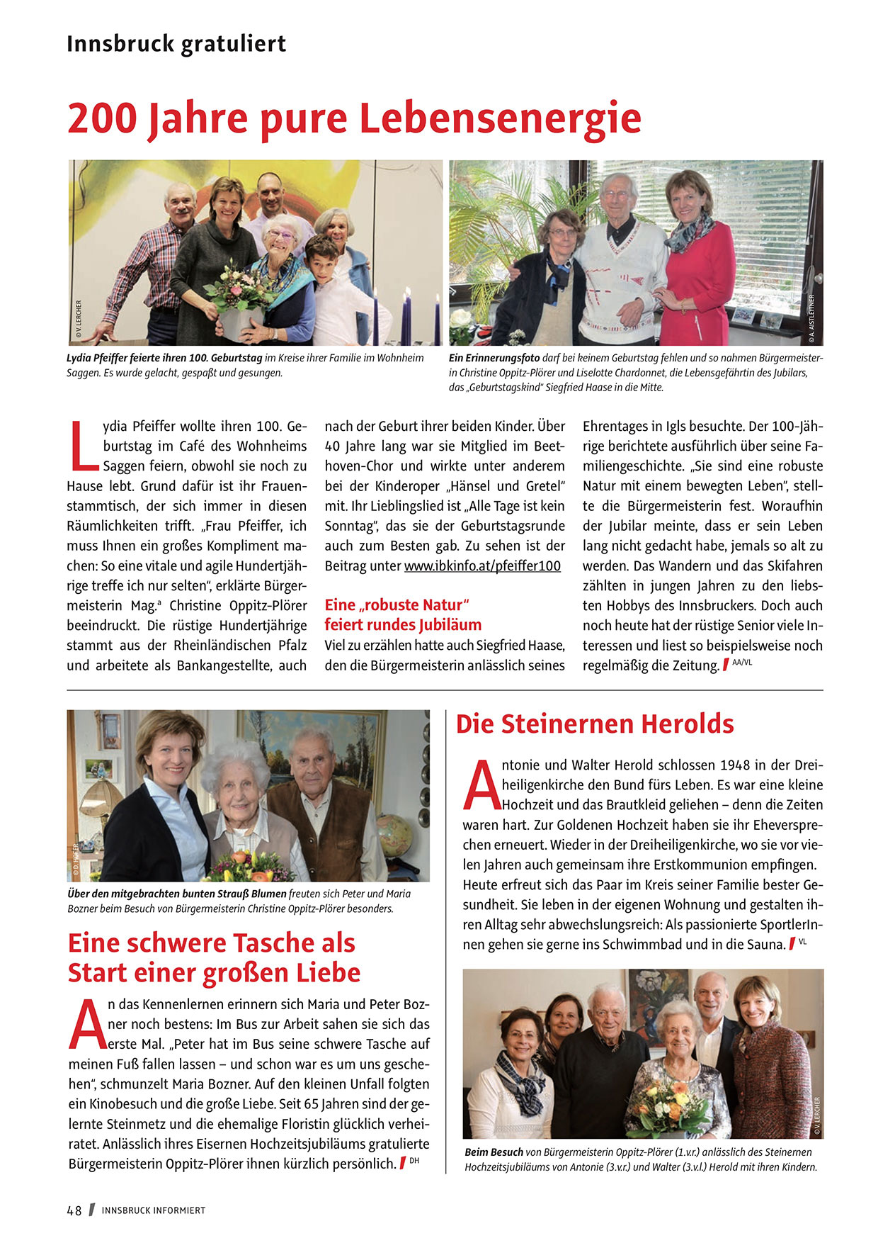 muss Ihnen ein großes Kompliment machen: So eine vitale und agile Hundertjährige treffe ich nur selten“, erklärte Bürgermeisterin Mag.a Christine Oppitz-Plörer