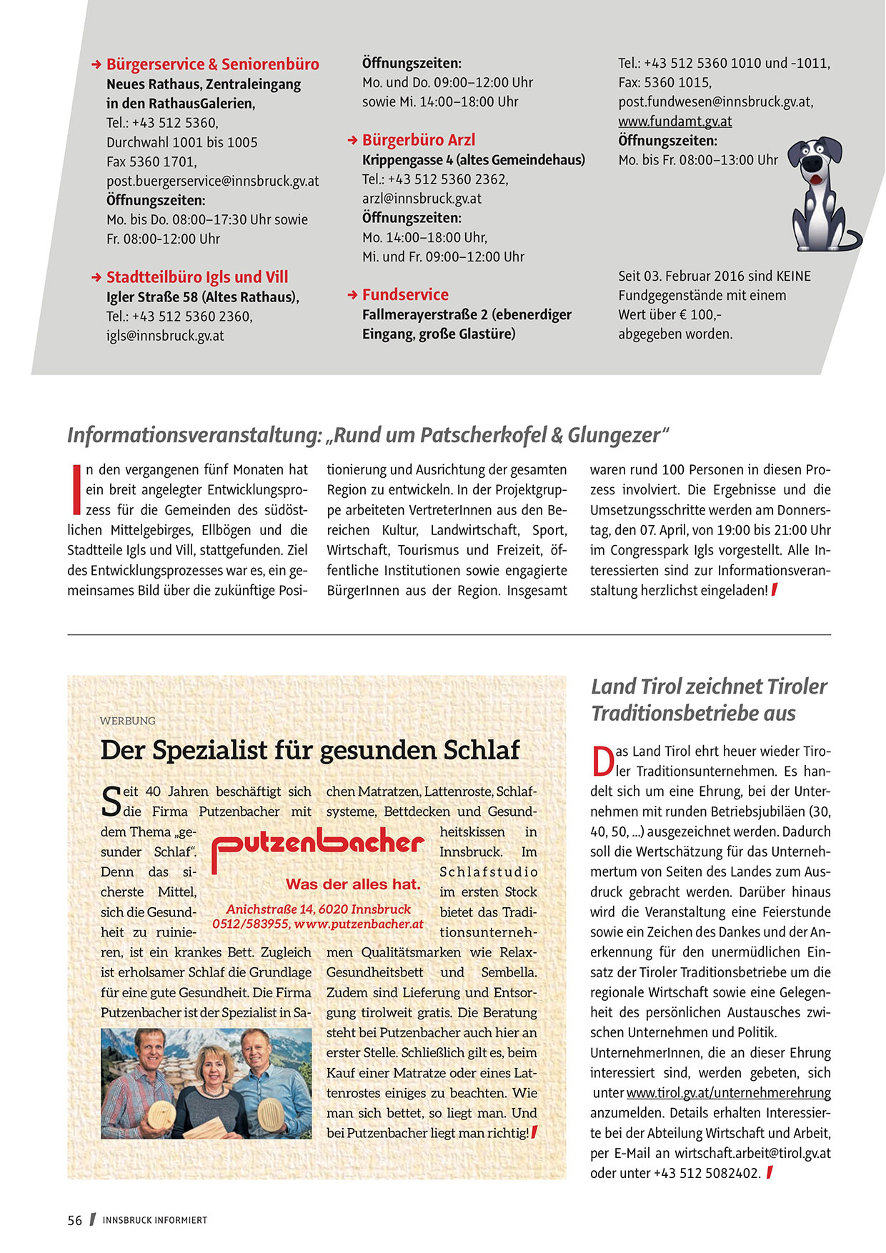 für eine gute Gesundheit. Die Firma Zudem sind Lieferung und EntsorPutzenbacher ist der Spezialist in Sa- gung tirolweit gratis. Die Beratung