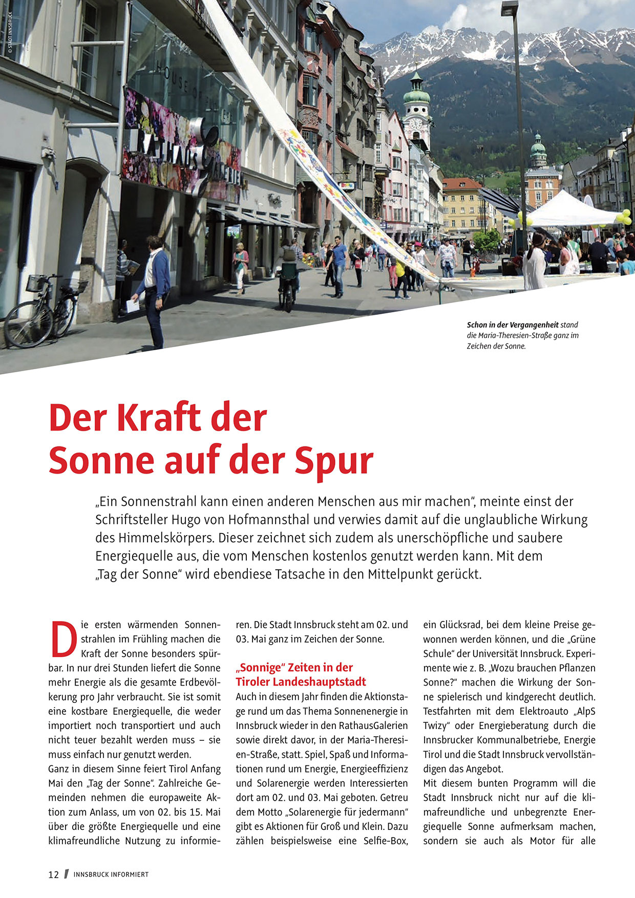 Stadt Innsbruck nicht nur auf die klimafreundliche und unbegrenzte Energiequelle Sonne aufmerksam machen,