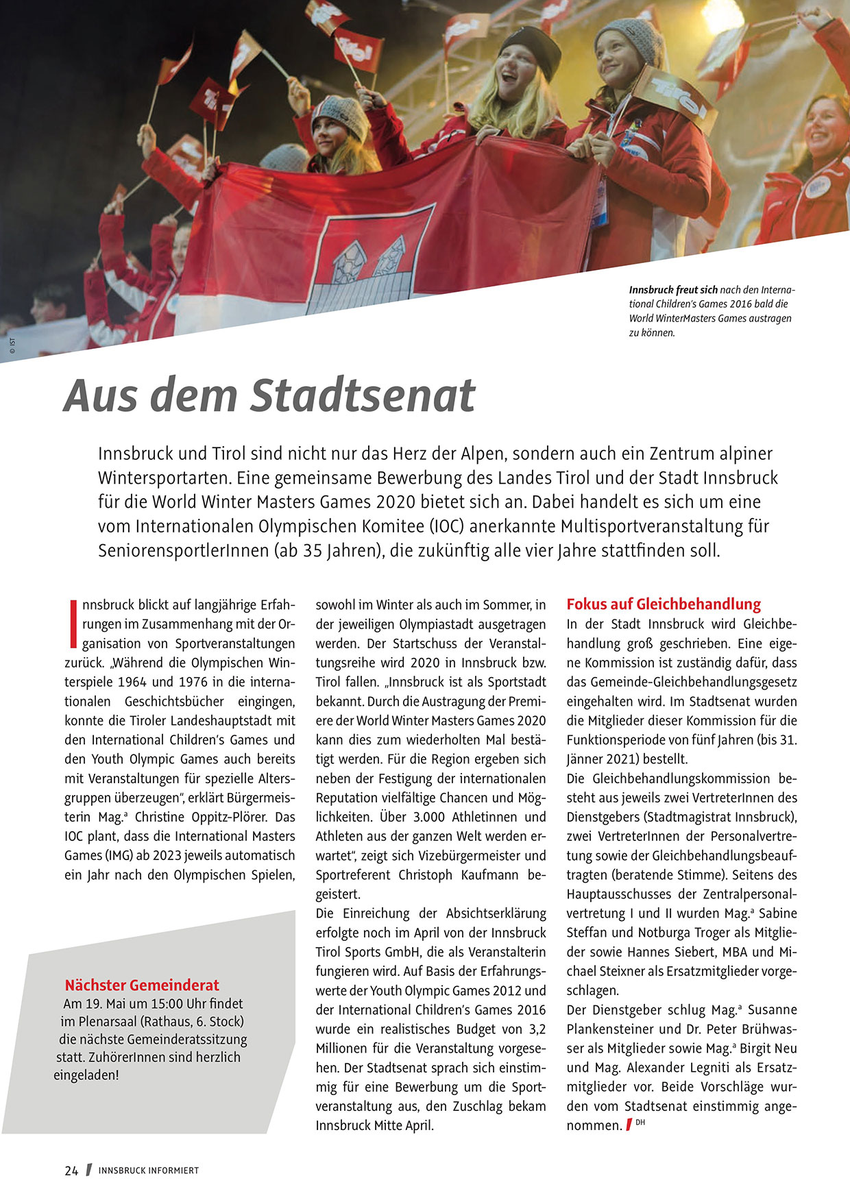 Innsbruck freut sich nach den International Children’s Games 2016 bald die
