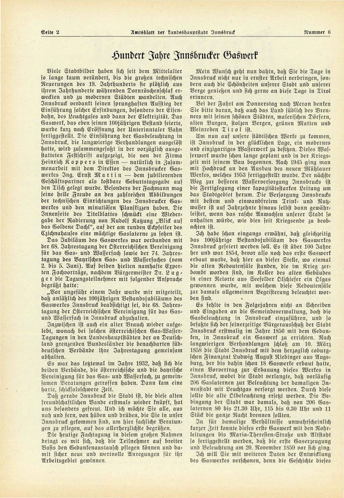 Gaswerkes Innsbruck beabsichtigt sei, die 68. Iahrestagung der Österreichischen Vereinigung für das Gasund Wasserfall) in Innsbruck abzuhalten.