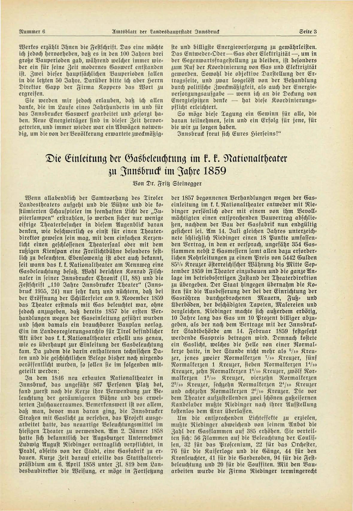 Festschrift „110 Jahre Innsbrucker Theater" ( I n n s bruck 1955, 24) nur sehr kurz und nüchtern, daß bei