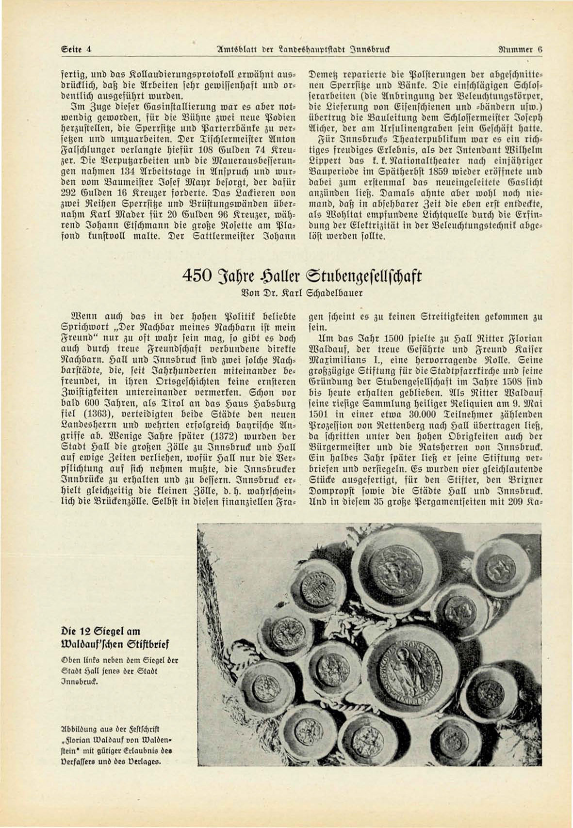 Nachbarn. Hall und Innsbruck sind zwei solche Nachbarstädte, die, seit Jahrhunderten miteinander befreundet, in ihren Ortsgeschichten keine ernsteren