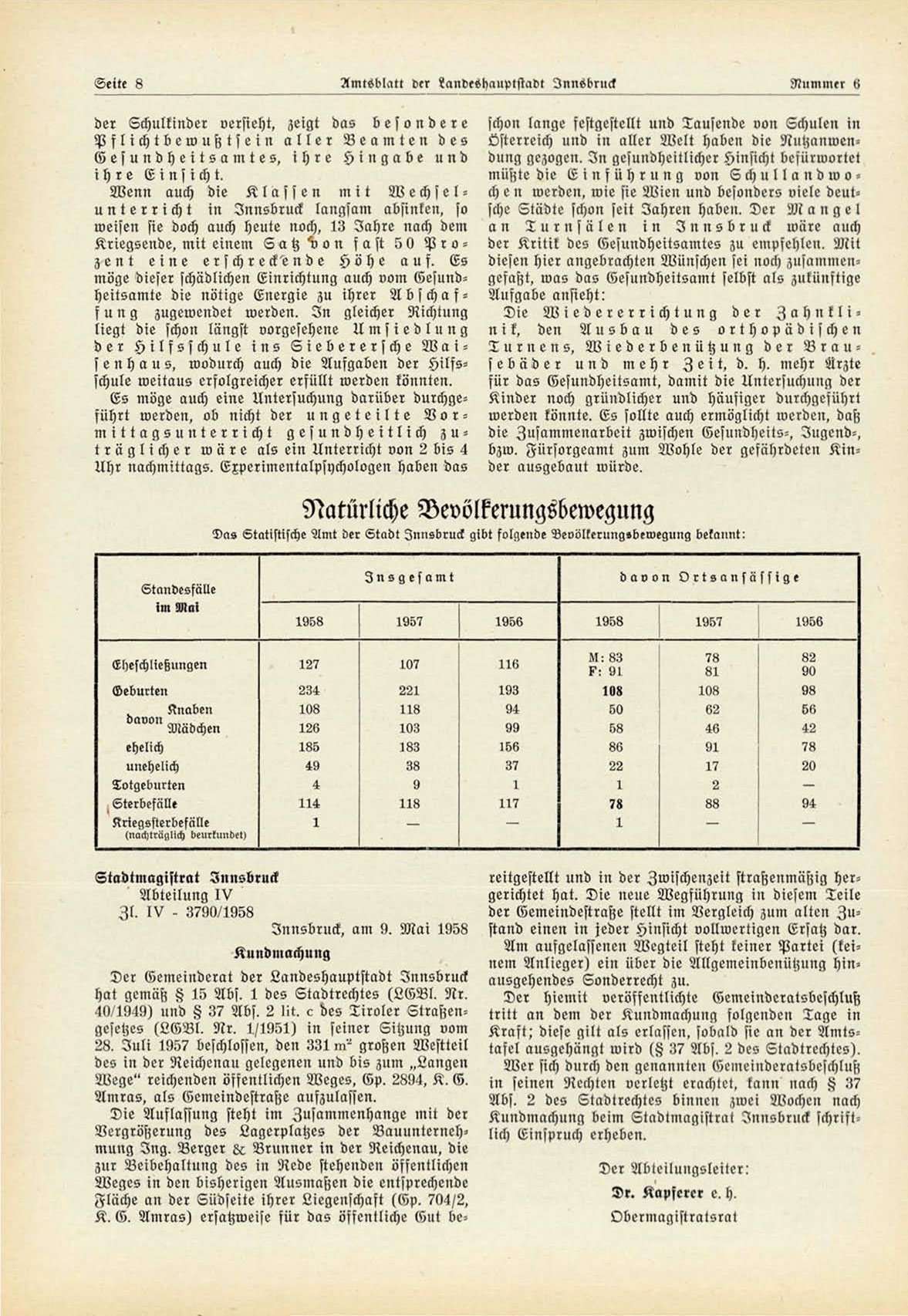 Innsbruck, am 9. M a i 1958