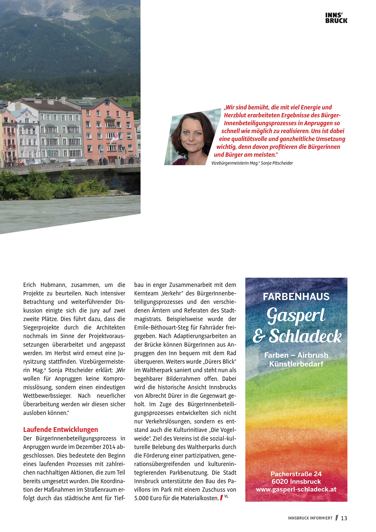 werden. Im Herbst wird erneut eine Jurysitzung stattfinden. Vizebürgermeisterin Mag.a Sonja Pitscheider erklärt: „Wir