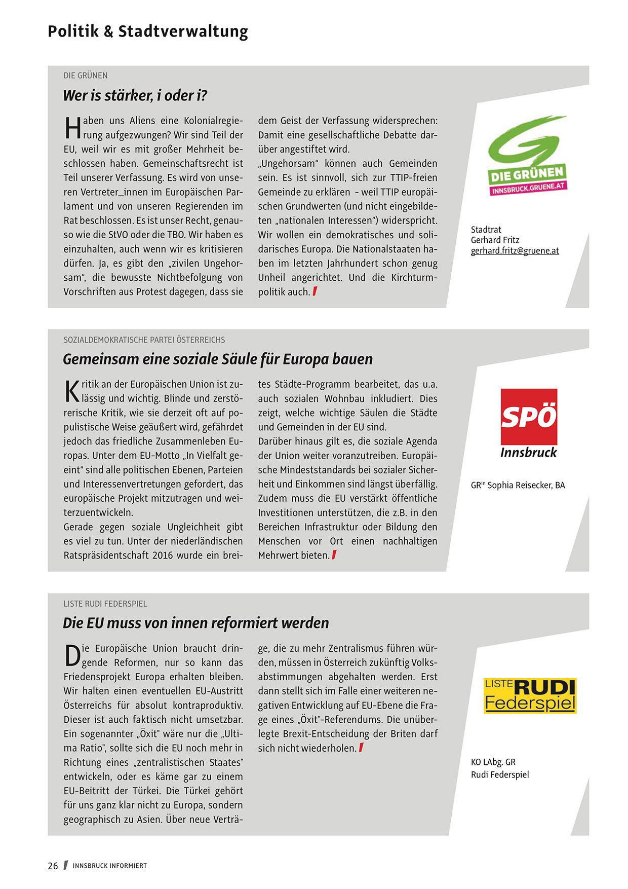 jedoch das friedliche Zusammenleben Europas. Unter dem EU-Motto „In Vielfalt geeint“ sind alle politischen Ebenen, Parteien