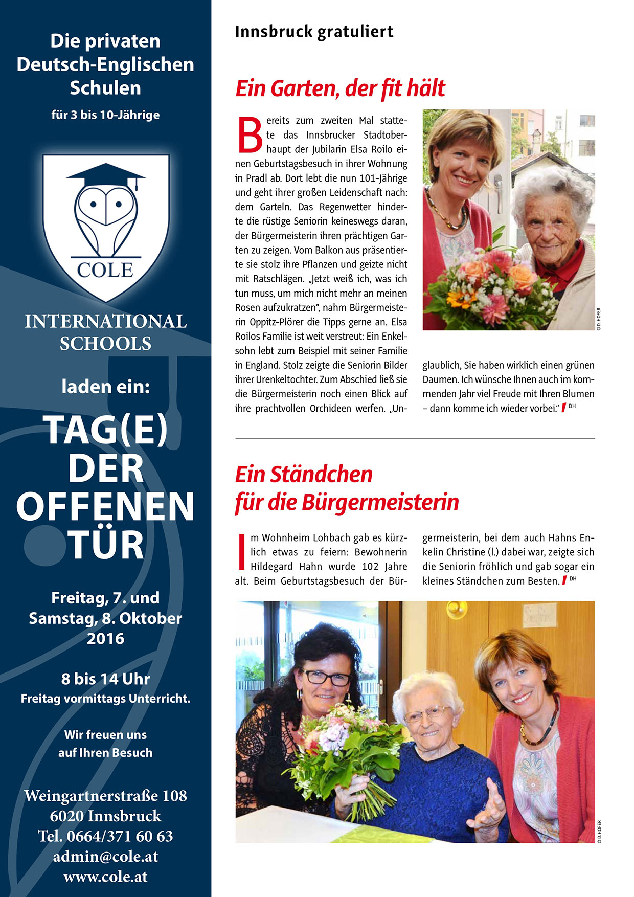 ereits zum zweiten Mal stattete das Innsbrucker Stadtoberhaupt der Jubilarin Elsa Roilo einen Geburtstagsbesuch in ihrer Wohnung