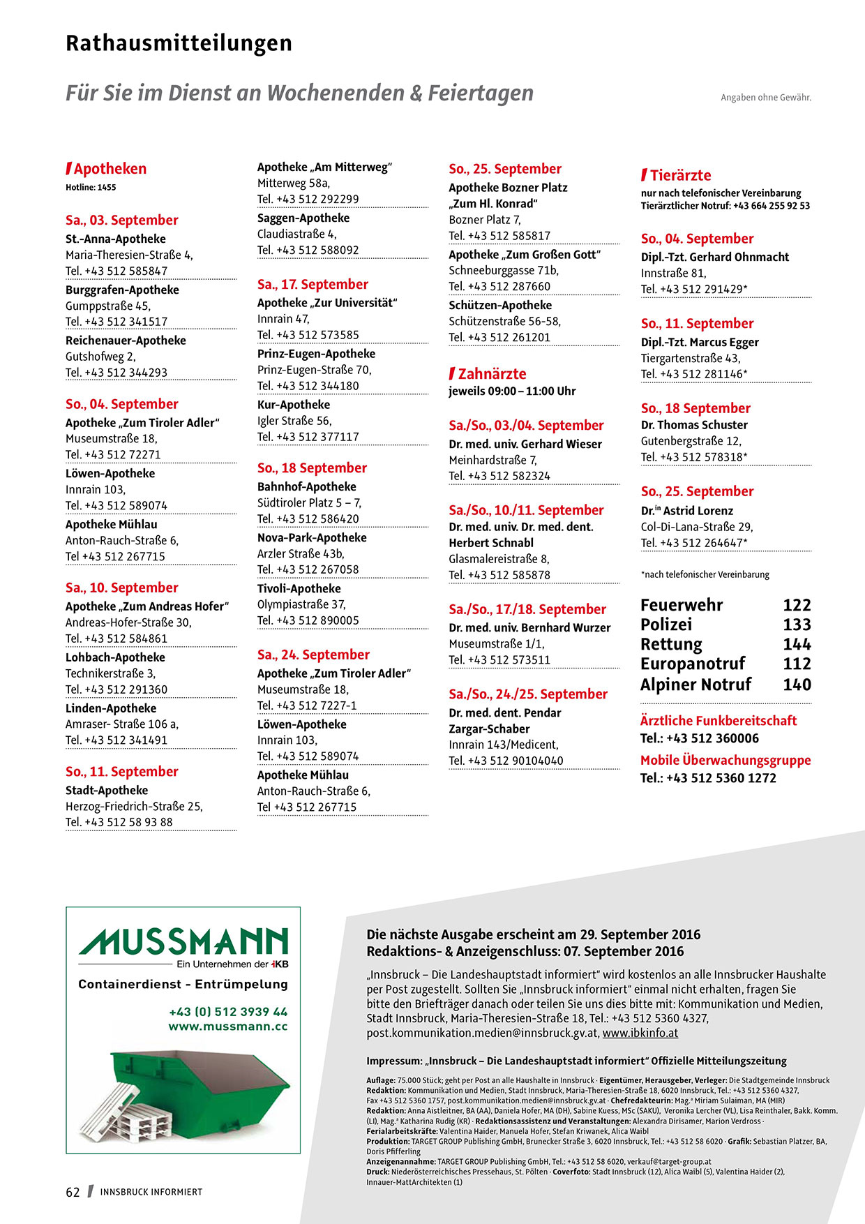 Impressum: „Innsbruck – Die Landeshauptstadt informiert“ Offizielle Mitteilungszeitung